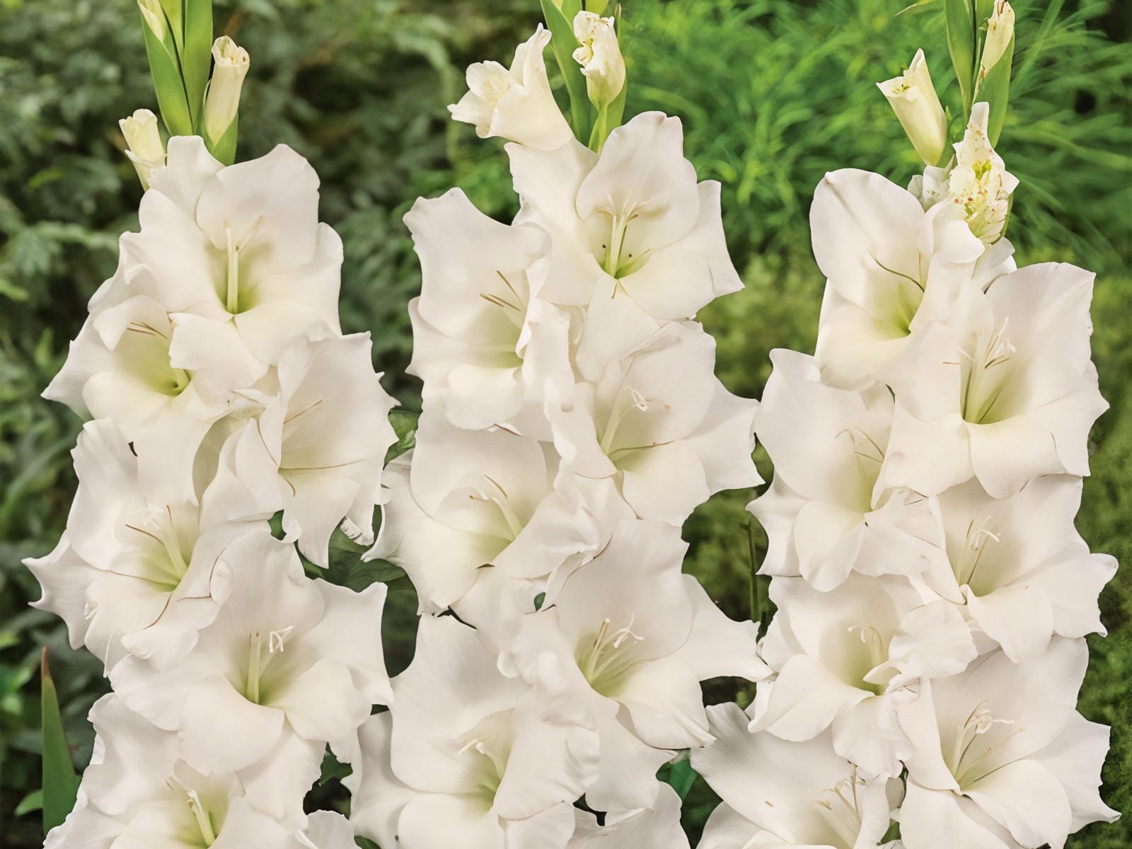 Reaching up to 100–120cm (40–48″) in height, they thrive in sunny, well-draining soil and benefit from staking in exposed areas. For extended flowering, plant corms in succession throughout spring. Gladiolus Fresh Lemon Mix blooms from mid to late summer, adding a gentle splash of sunshine to your garden.