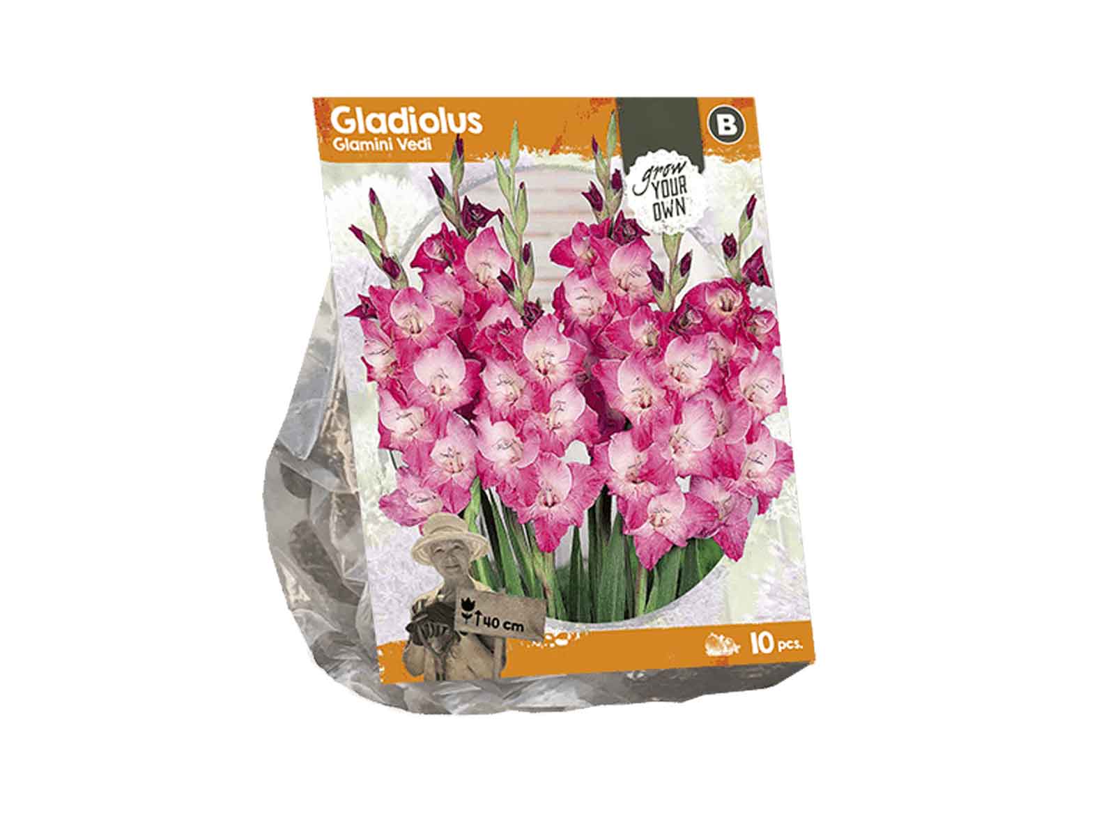 Gladiolus Glamini ‘Vedi’ is a charming and compact variety, showcasing soft pastel pink blooms with delicate white centers and subtle blush undertones. Its elegant, ruffled petals and graceful form add a touch of romance and refinement, making it an excellent choice for borders, containers, or cut flower arrangements. Despite its shorter stature, ‘Vedi’ delivers high visual impact with its gentle, uplifting color palette.