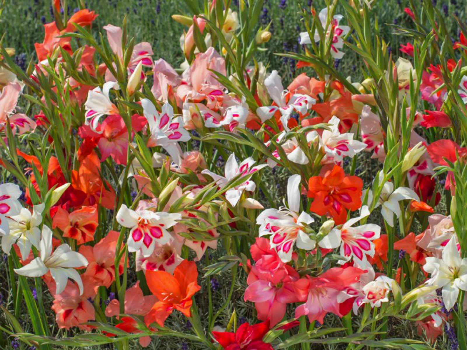 Reaching up to 50–70cm (20–28″) in height, it thrives in sunny, well-draining soil and generally requires less staking than standard varieties. Gladiolus ‘Nanus’ blooms earlier than most gladioli, typically from late spring to early summer, bringing elegance and charm to the garden ahead of the high summer season.