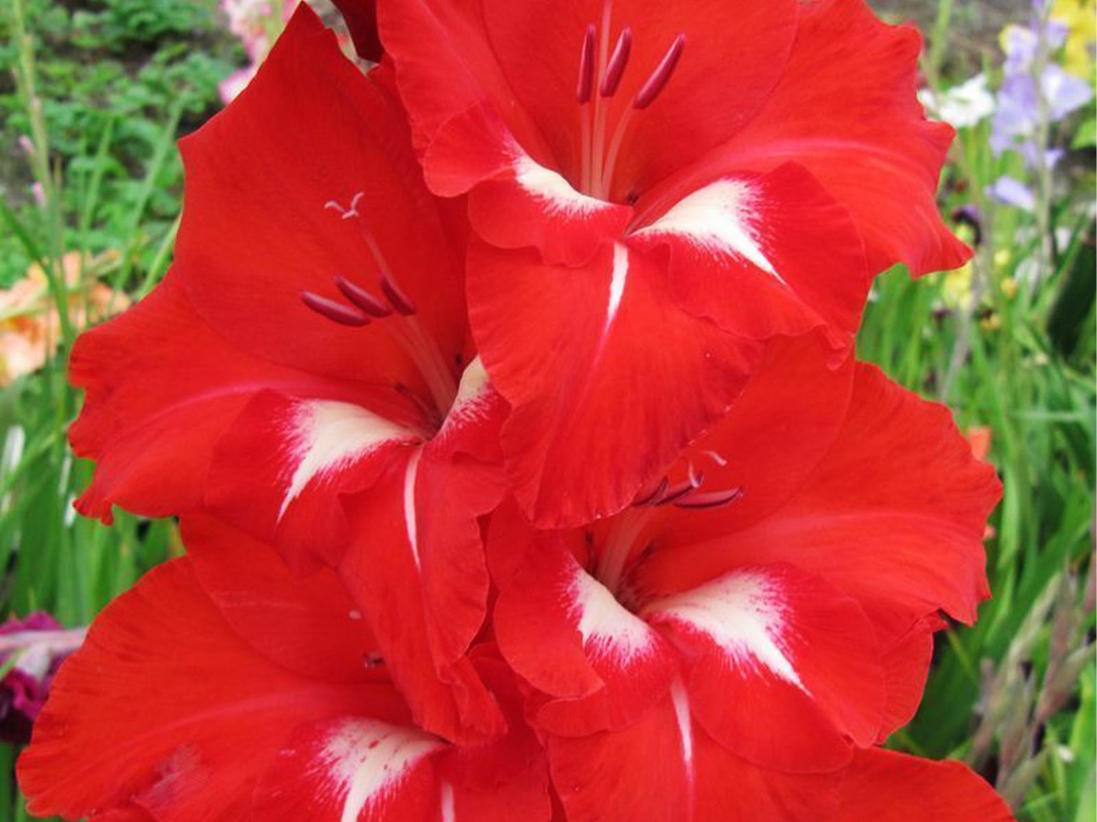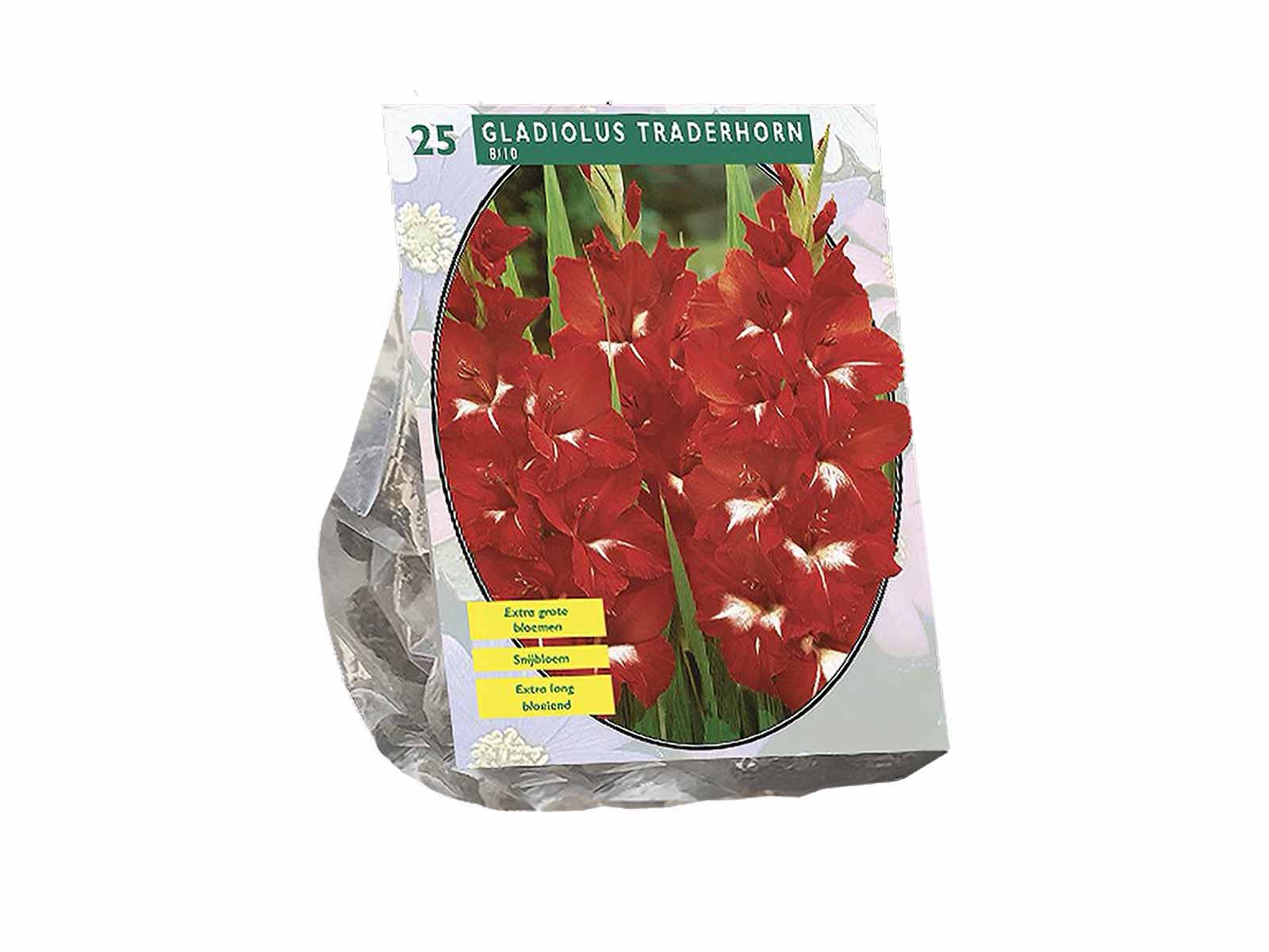 Gladiolus ‘Traderhorn’ is a classic and vibrant variety known for its striking, bright red blooms with a slightly ruffled edge. These tall, elegant flower spikes make a bold statement in borders, beds, and cut flower arrangements, adding fiery color and vertical interest to summer gardens. Its vivid red petals stand out beautifully against green foliage and other softer-toned flowers.
