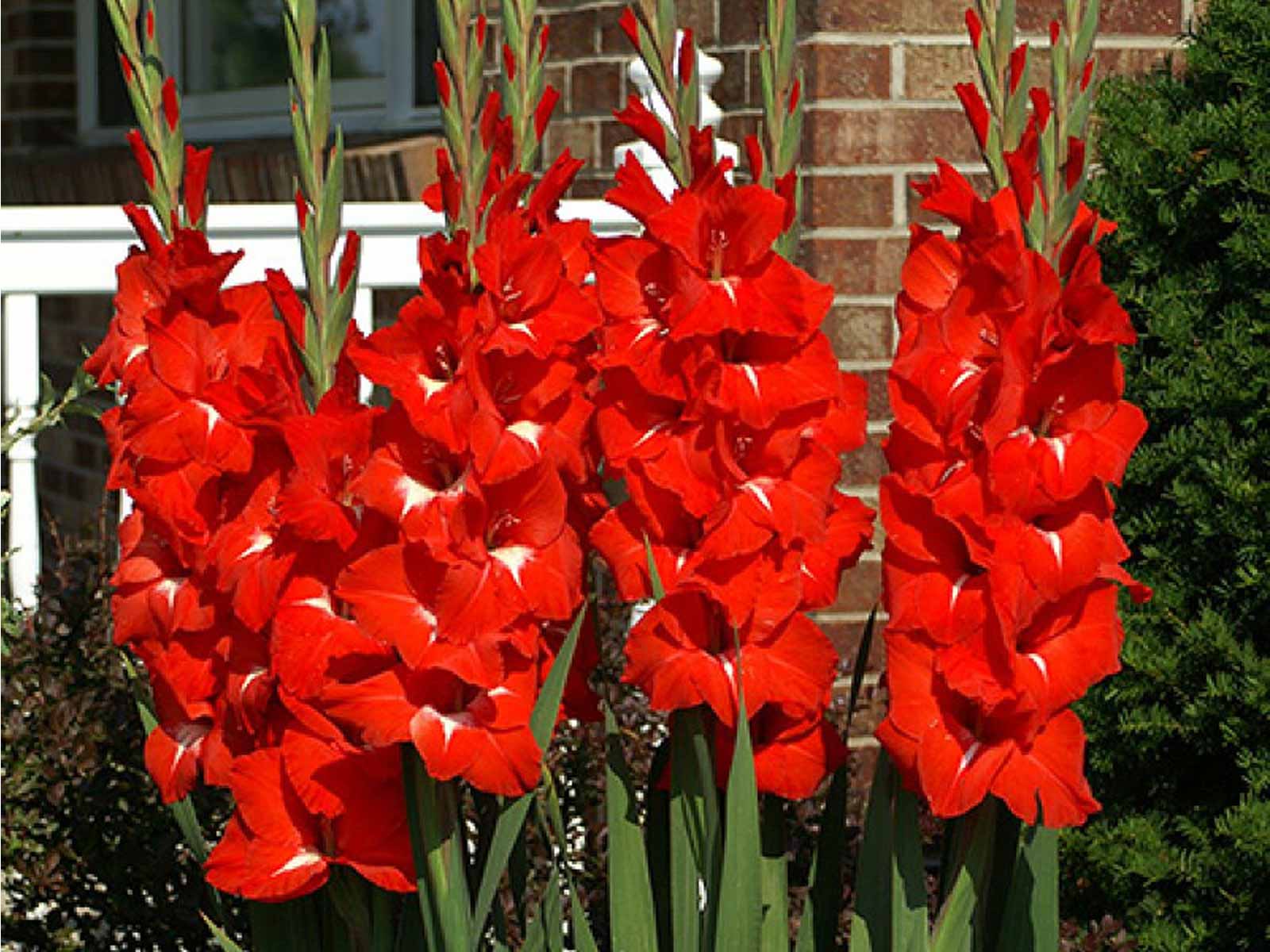 Reaching up to 100–120cm (40–48″) in height, it grows best in sunny, well-draining soil and may require staking for support. For extended blooms, plant corms in succession during spring. Gladiolus ‘Traderhorn’ flowers from mid to late summer, providing a strong, dramatic splash of red at the height of the season.