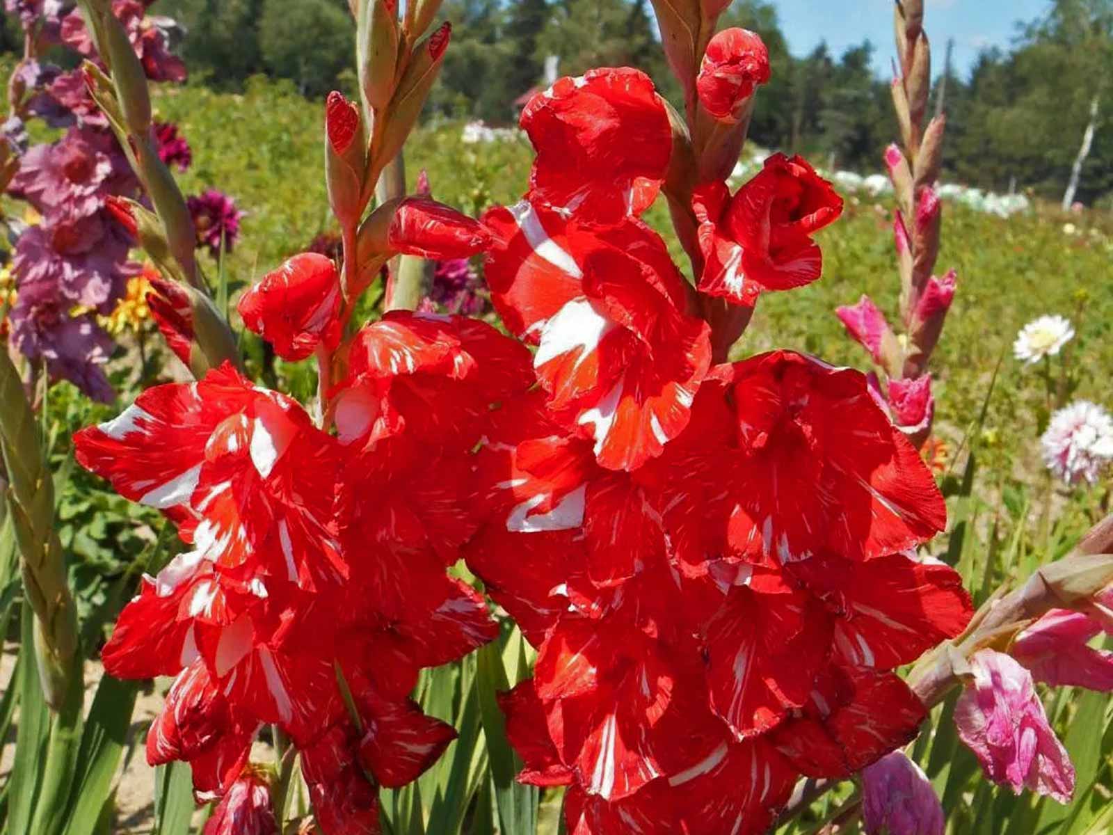 Reaching up to 100–120cm (40–48″) in height, it grows best in sunny, well-draining soil and may require staking for support. For prolonged blooming, plant corms in succession during spring. Gladiolus ‘Zizanie’ flowers from mid to late summer, delivering a dazzling, high-impact display when the garden is in full swing.
