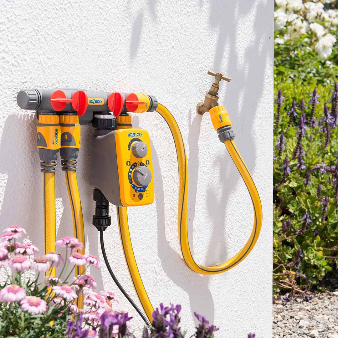 Hozelock 4 way tap connecter allows you to connect a single tap into 4 outlets with individual flow control valves. Connects easily with most taps and includes 21mm (1/2” BSP), 26.5mm (¾” BSP) or 33.3mm (1” BSP) adaptors.