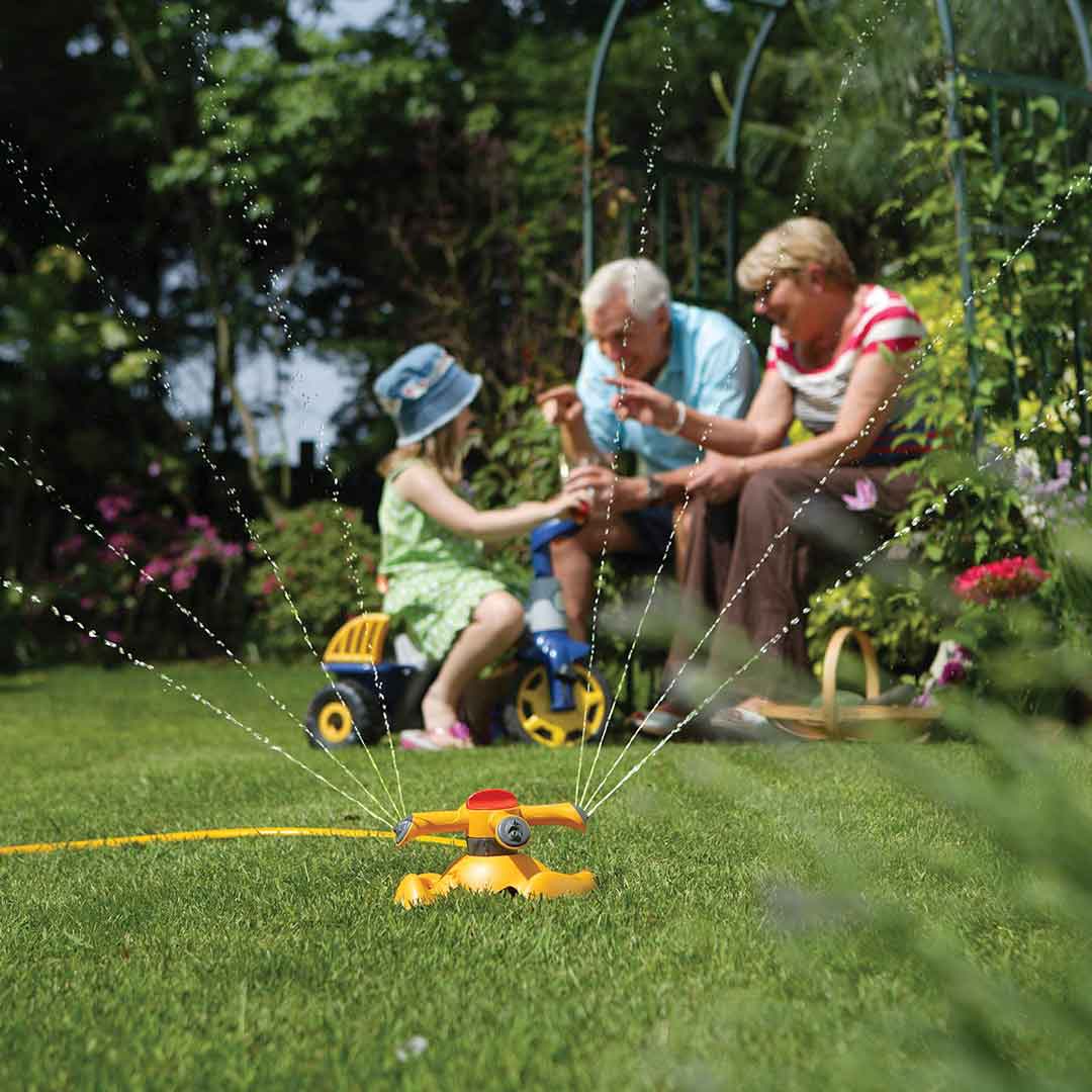 • Four arm rotating sprinkler for great coverage