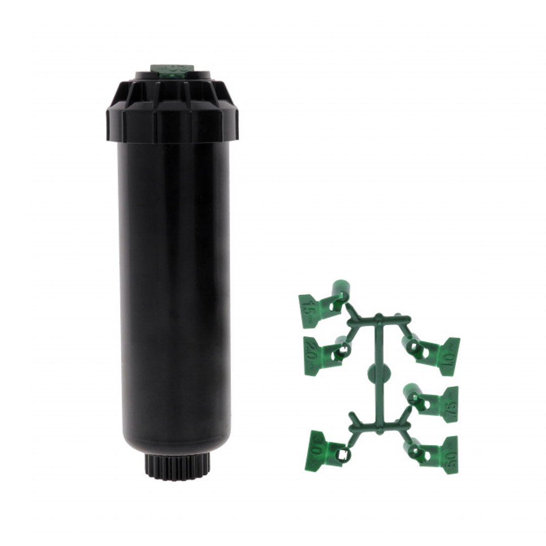 The Hunter Pop-Up Dynamic 1/2″ SRM-04 sprinkler is the turbine Hunter that covers the shortest distance and is designed to offer a practical and efficient alternative to static heads. It is capable of working in tandem with larger turbines to group large and small areas into one. Using the SRM instead of static heads provides better results with fewer sprinklers at a lower cost. Hunter TheSRM-04 includes a set of six water-saving nozzles, all of which are easily identifiable, have low flow rates, and can be quickly installed and replaced. This turbine is also arc-adjustable and has a distance-adjusting radius-breaking screw to avoid wetting floors, paths or other non-grass surfaces. Variable radius of action ( from 4.0 mt to 9.4 mt ), depending on the flow rate and water pressure and nozzle installed.