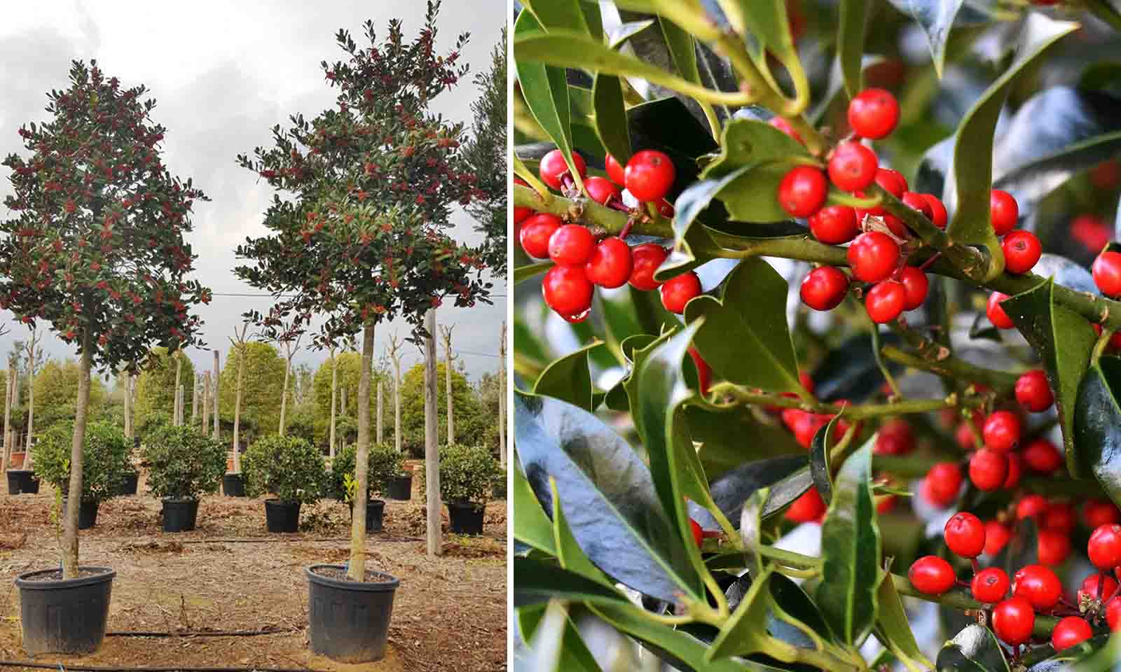 The Ilex x Nellie R.Stevens is a holly plant that is a cross between English holly ilex aquifolium and Chinese holly ilex cornuta. The plant itself with its beautiful glossy green leaves and red berries has always been traditionally seen in Europe and America as Christmas holly and used in some European countries to ward off evil spirits by hanging them above the doorway. The flowering period is April where it usually starts to blossom its small white flowers and during the Autumn-Winter period, the actual berries themselves start to form. It is a bushy plant with a fast growth speed. It does not requiring maintenance but a quick trim in the summer could help if the leaves get a bit too long. The hardiness of this plant at H6 is perfect for the British climate and only during the extreme cold do you need to shelter it. Be careful of pests and potentially the holly leaf disease with this plant. Be careful not to eat the berries, no matter how inviting they may seem, as they could cause potentially a minor stomach upset if ingested.