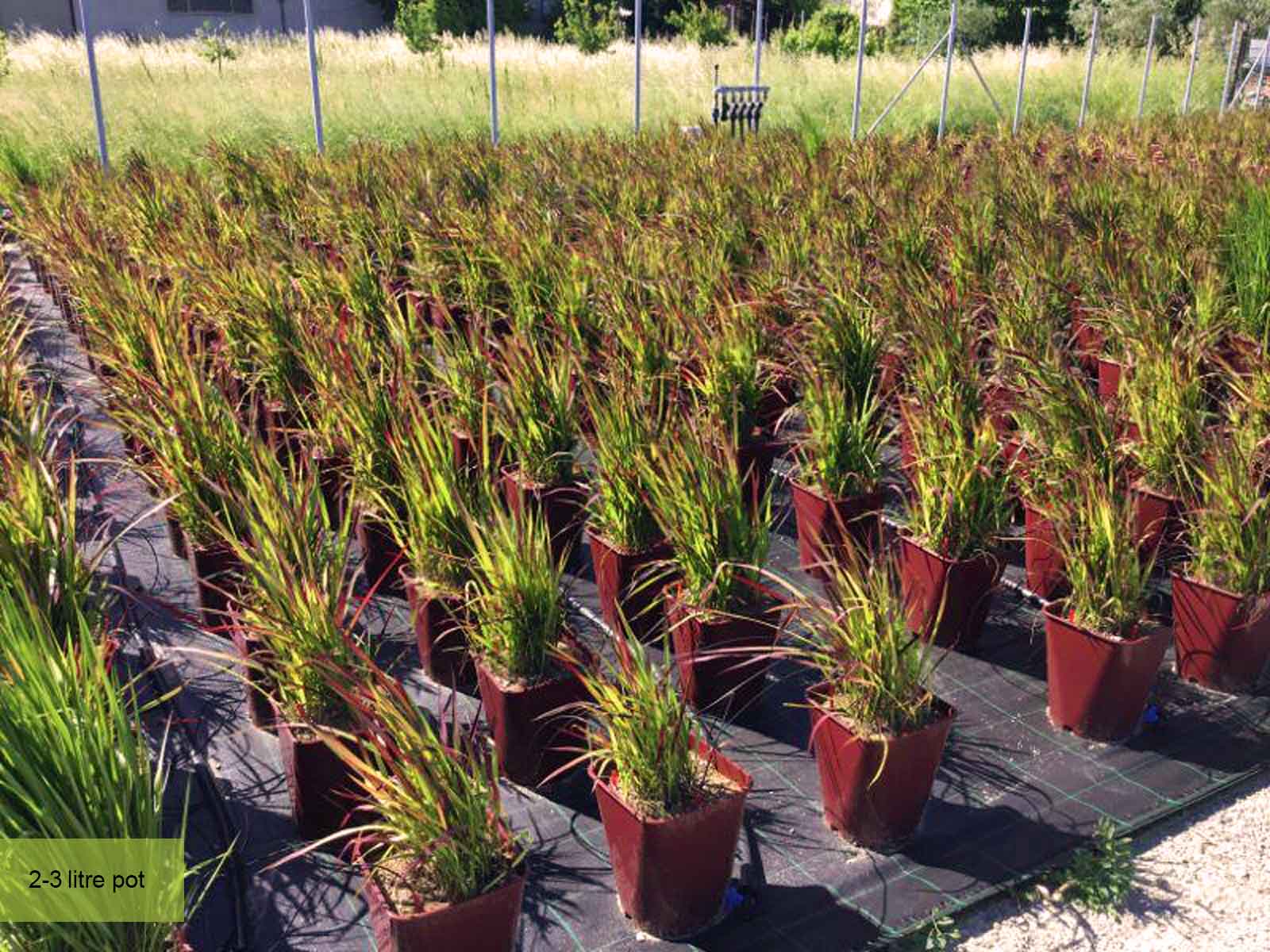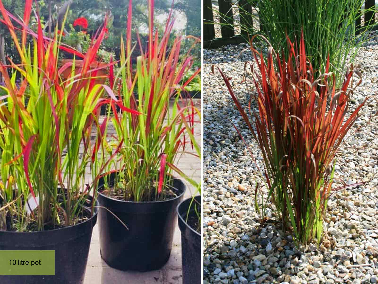 A visually striking grass – the blood red tips of its green leaves become brighter as summertime rolls on.