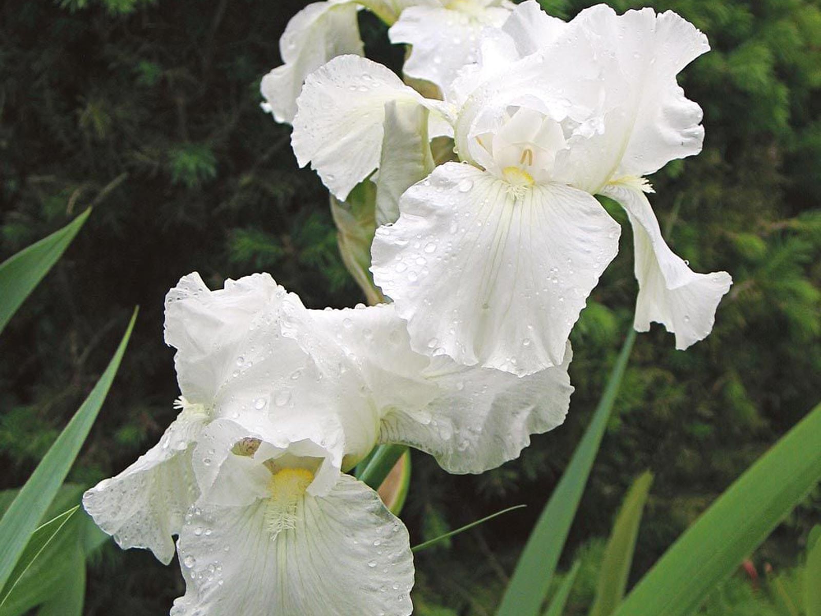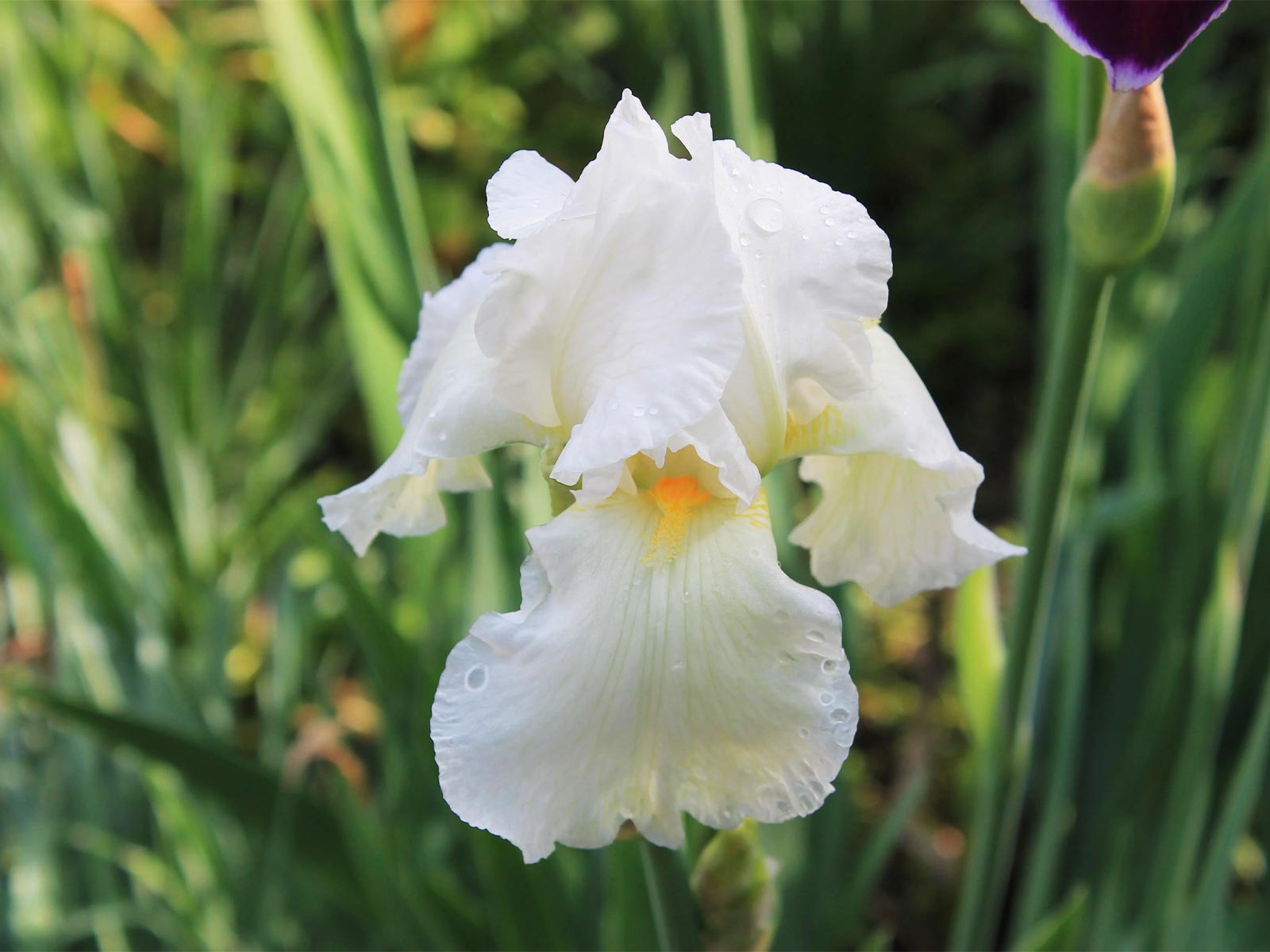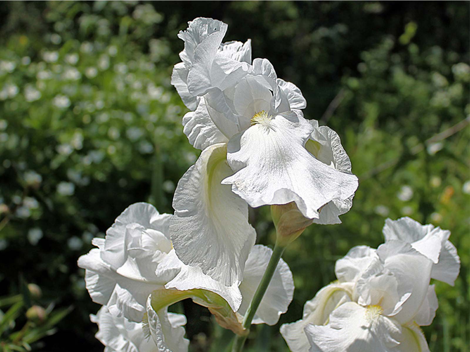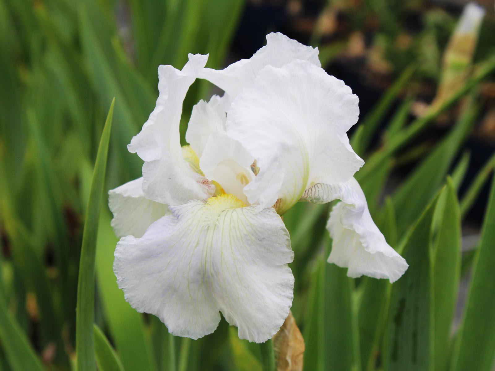Iris germanica White is a timeless and elegant bearded iris variety, featuring large, ruffled blooms in pure, crisp white. Its clean, luminous petals add brightness and contrast to garden borders, beds, and floral arrangements, making it a standout in both formal and cottage-style plantings. The upright, sword-like foliage provides structure and interest even after flowering.