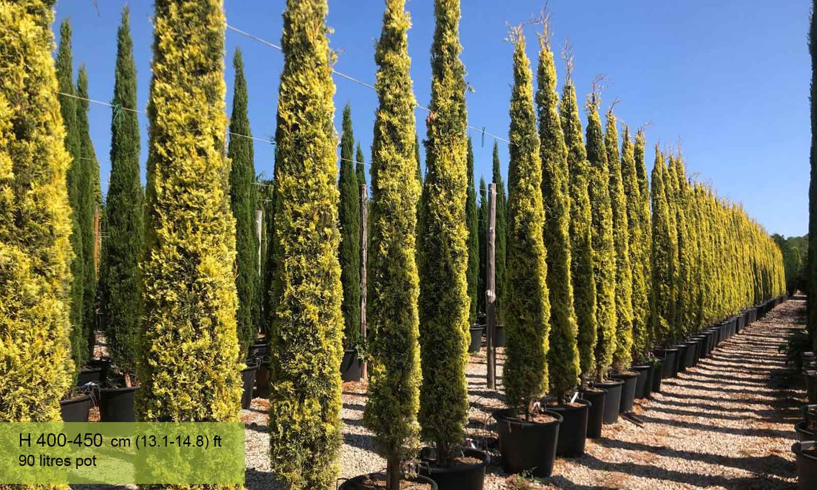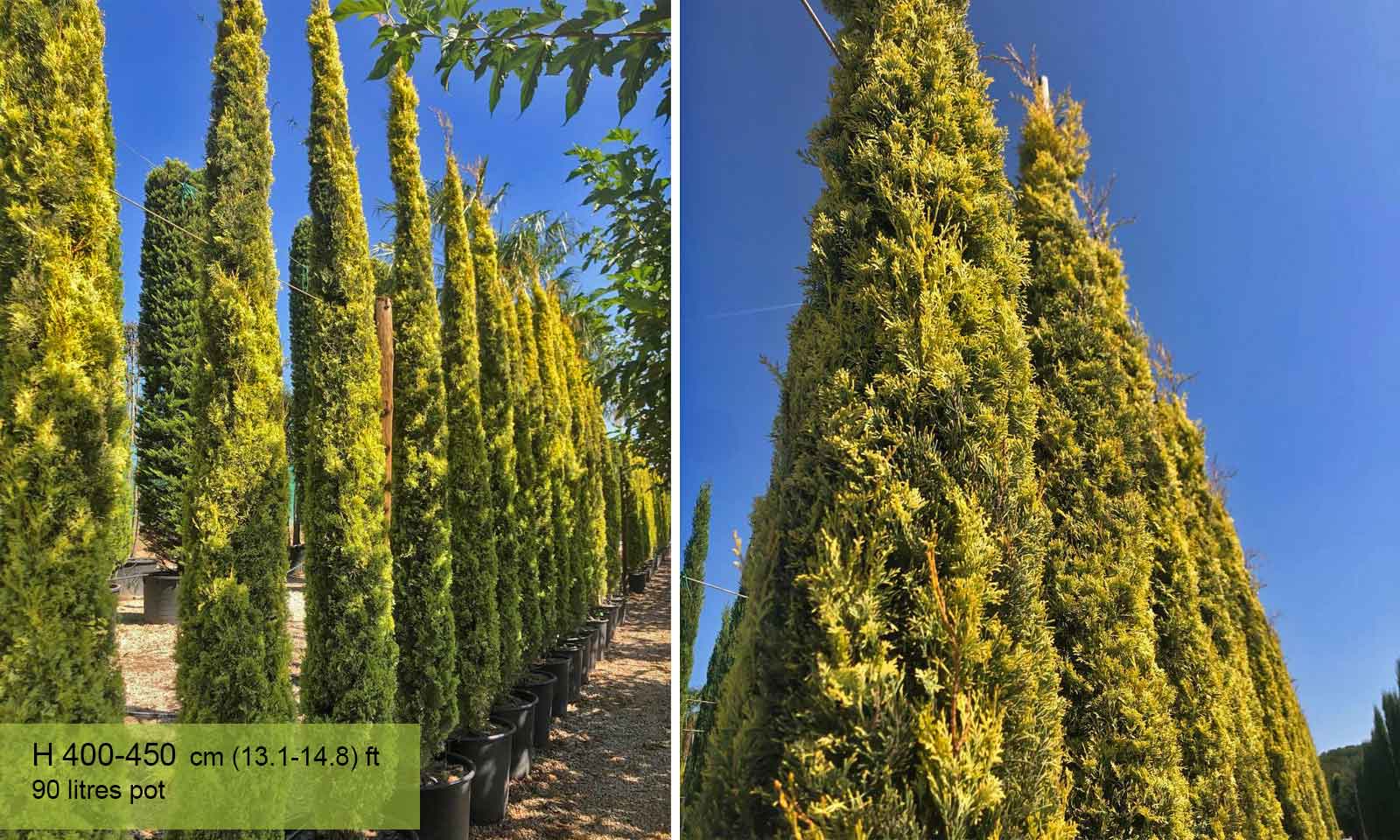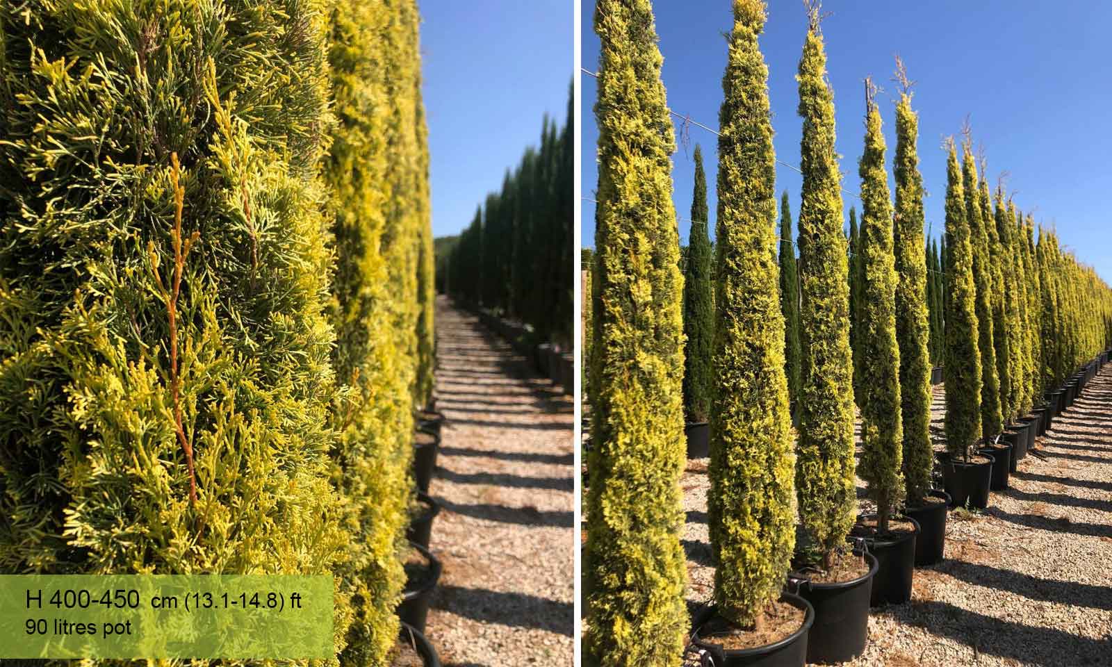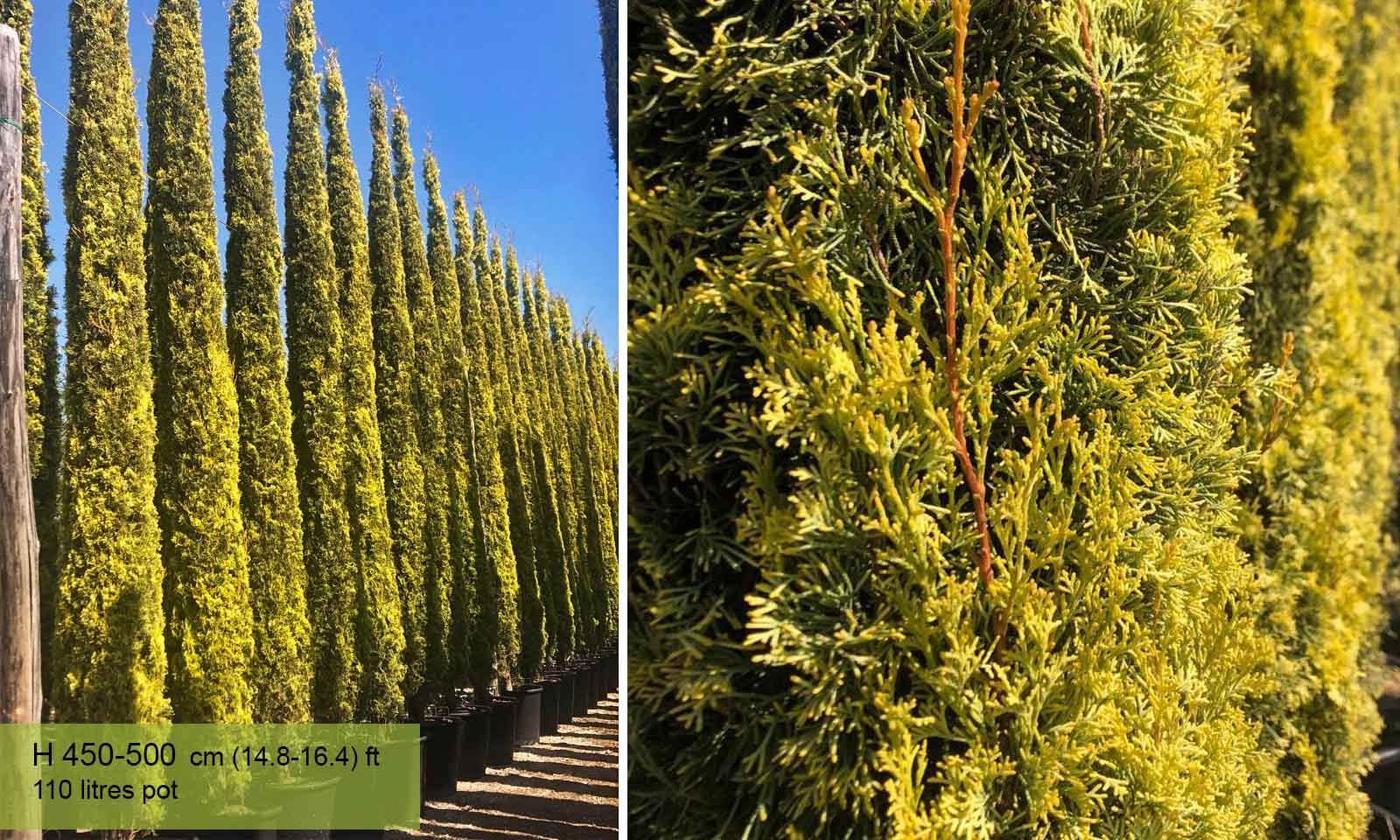 A striking evergreen with a narrow, upright form and golden-yellow foliage that shines year-round. Ideal for creating elegant focal points, tall screens, or accent planting in sunny, well-drained areas. Perfect for bringing a touch of Mediterranean charm to your garden!