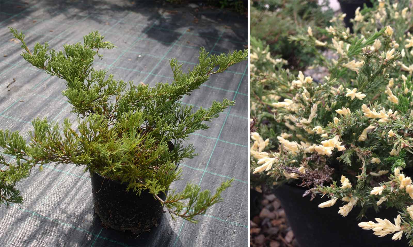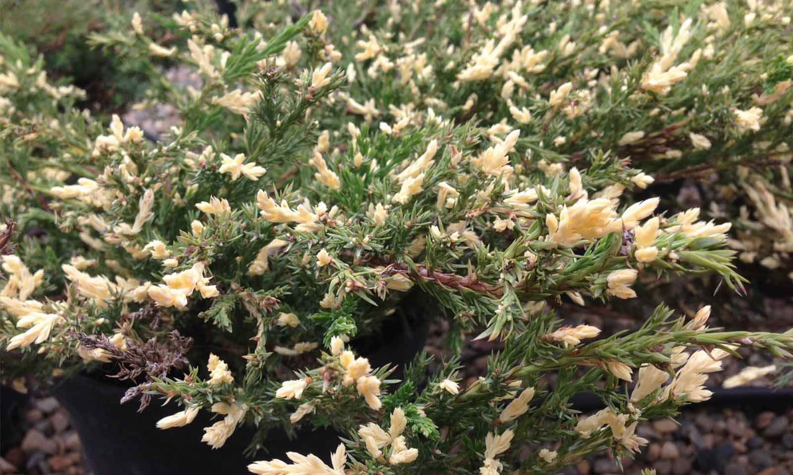 The Juniperus can be classified among the most ornamental and most useful garden conifers. They have a great variety of dimensions, forms, habits and colour of foliage, as well as excellent adaptability to the most diverse climate and soil conditions: they grow and prosper everywhere, even on chalky soil. The varieties with prostrate or semiprostrate habit most used in landscape art and as ground cover, for terraces and balconies. The varieties with erect habit great for hedges, groups and individual plantings. Juniperus Horizontalis ‘Andorra Compacta Variegata’ – ground cover conifer with variegated golden-yellow foliage.