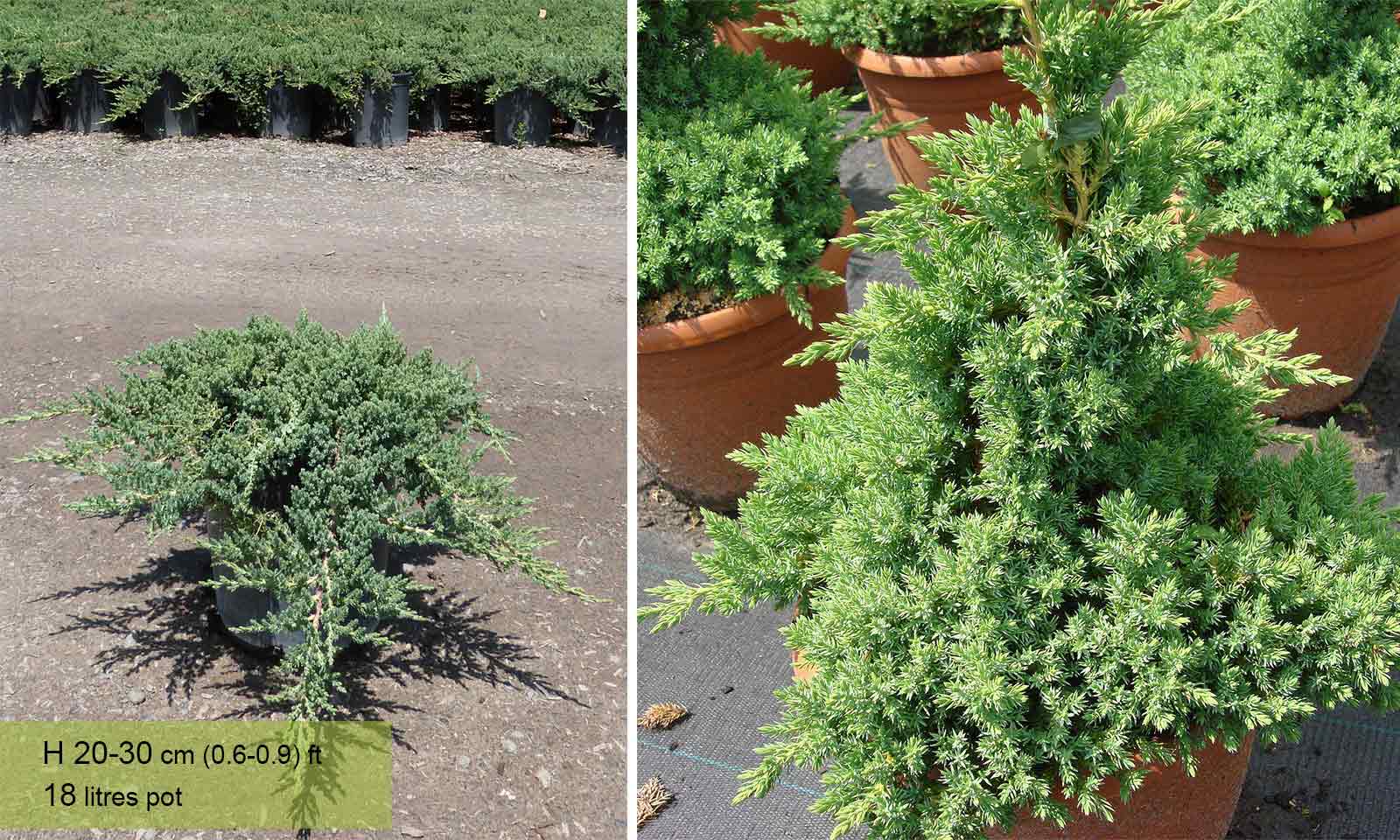 The Juniperus can be classified among the most ornamental and most useful garden conifers. They have a great variety of dimensions, forms, habits and colour of foliage, as well as excellent adaptability to the most diverse climate and soil conditions: they grow and prosper everywhere, even on chalky soil. The varieties with prostrate or semiprostrate habit most used in landscape art and as ground cover, for terraces and balconies. The varieties with erect habit great for hedges, groups and individual plantings. Juniperus Procumbens ‘Nana’ – beautiful dwarf conifer with soft green foliage.
