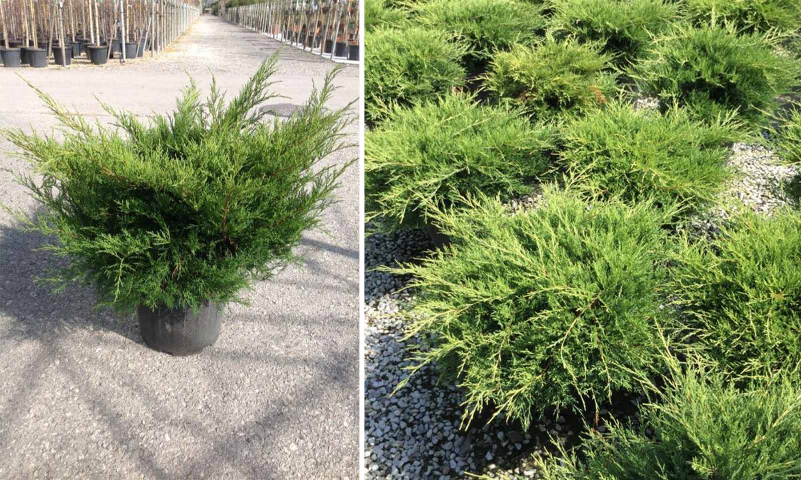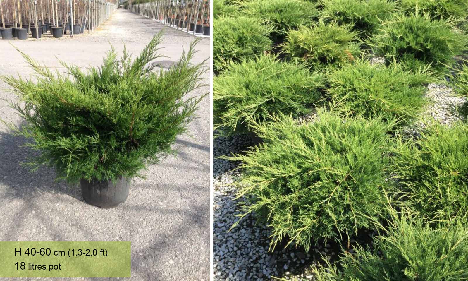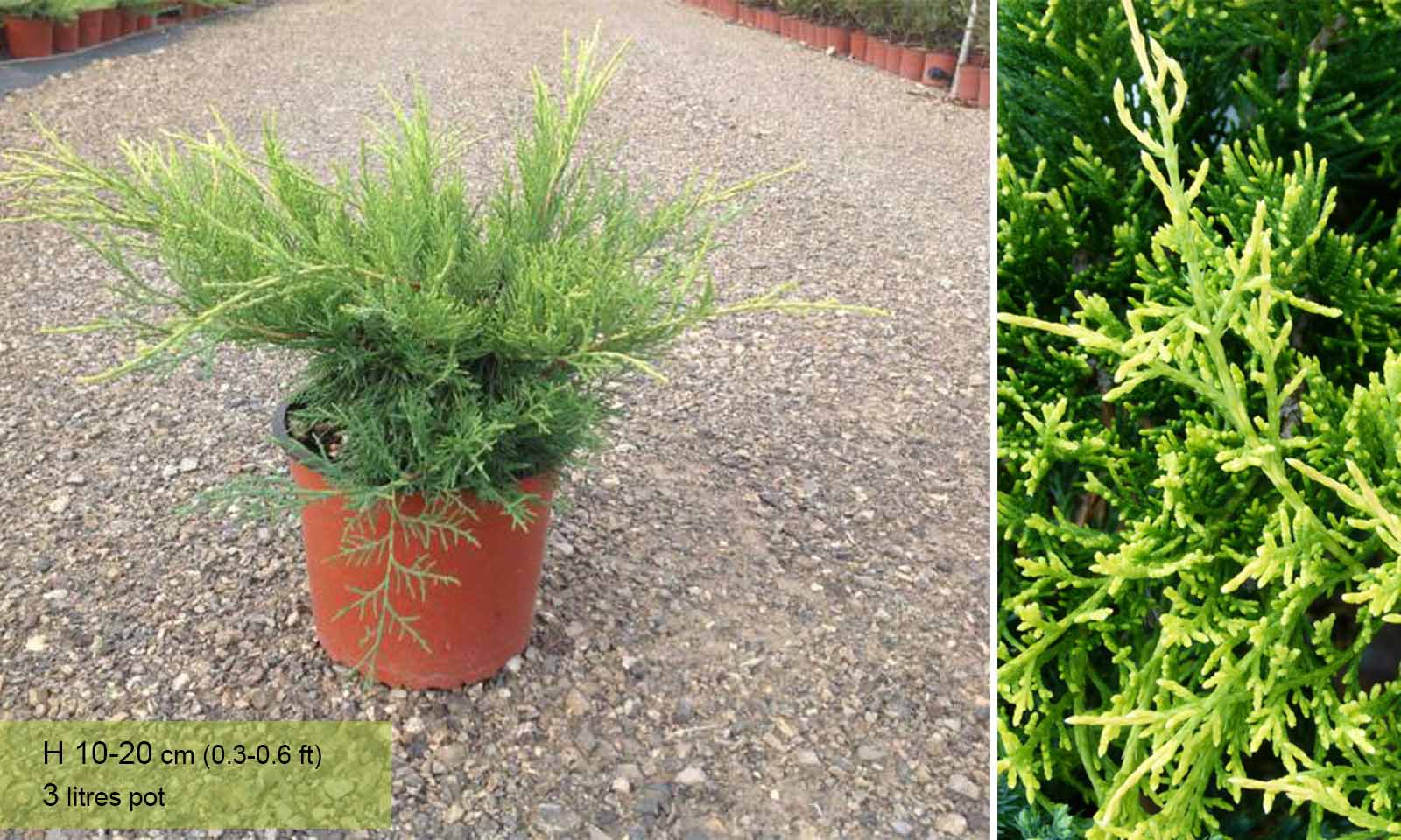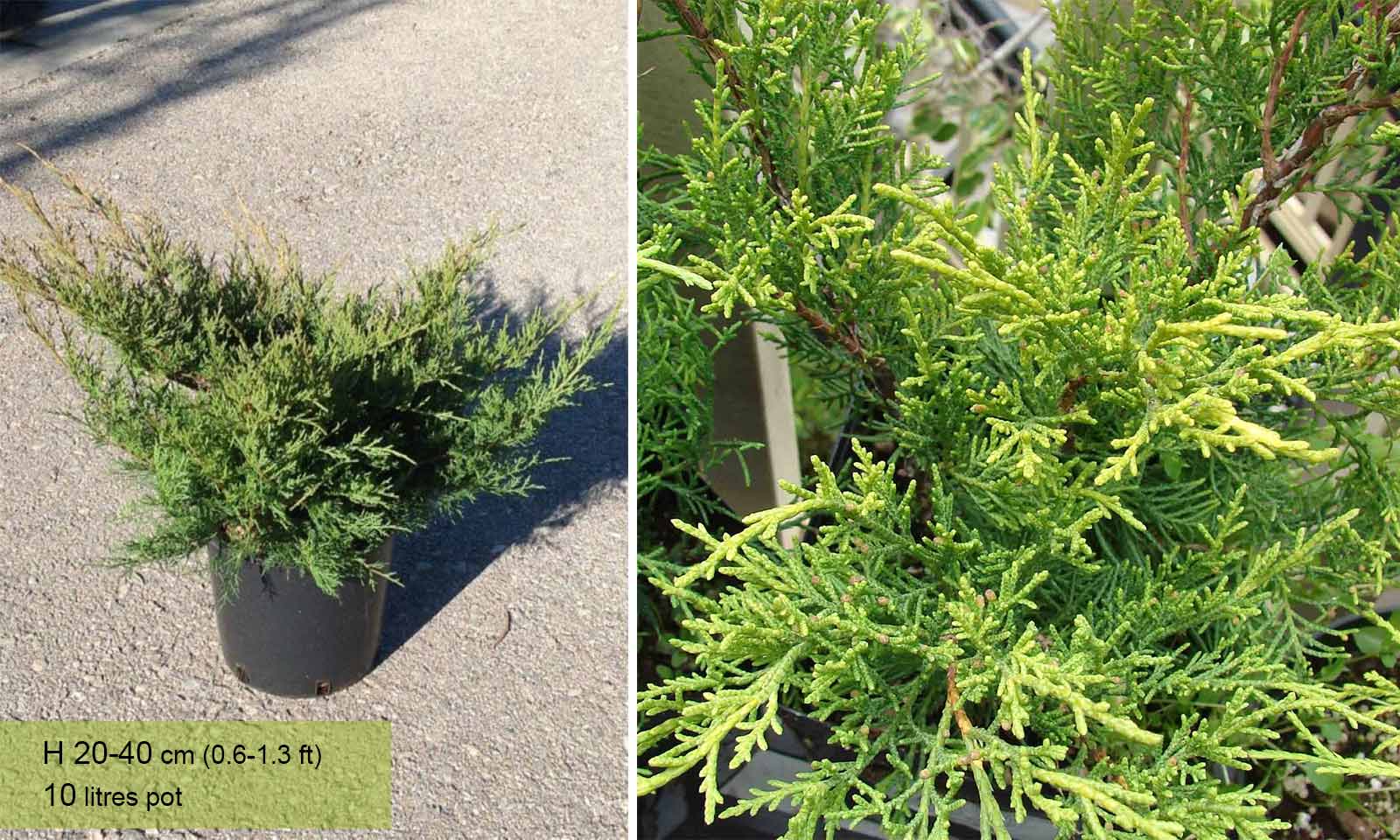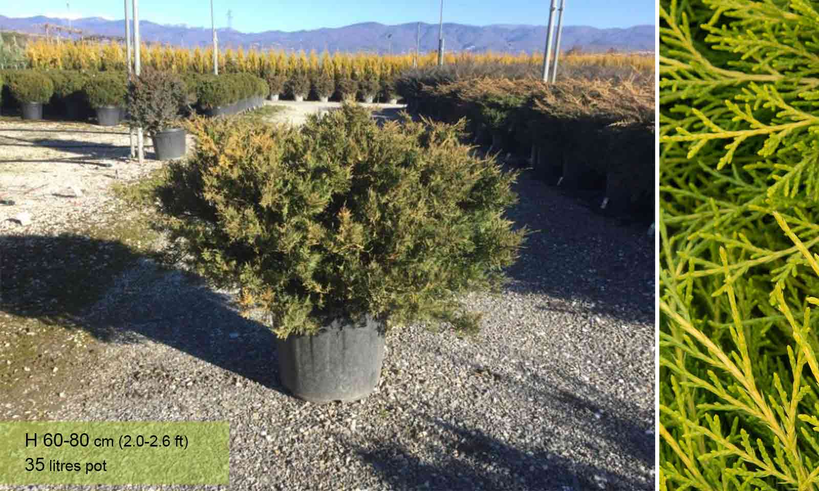 The Juniperus can be classified among the most ornamental and most useful garden conifers. They have a great variety of dimensions, forms, habits and colour of foliage, as well as excellent adaptability to the most diverse climate and soil conditions: they grow and prosper everywhere, even on chalky soil. The varieties with prostrate or semiprostrate habit most used in landscape art and as ground cover, for terraces and balconies. The varieties with erect habit great for hedges, groups and individual plantings. Juniperus x Media ‘Old Gold’ – beautiful, compact dwarf conifer with golden-yellow foliage.