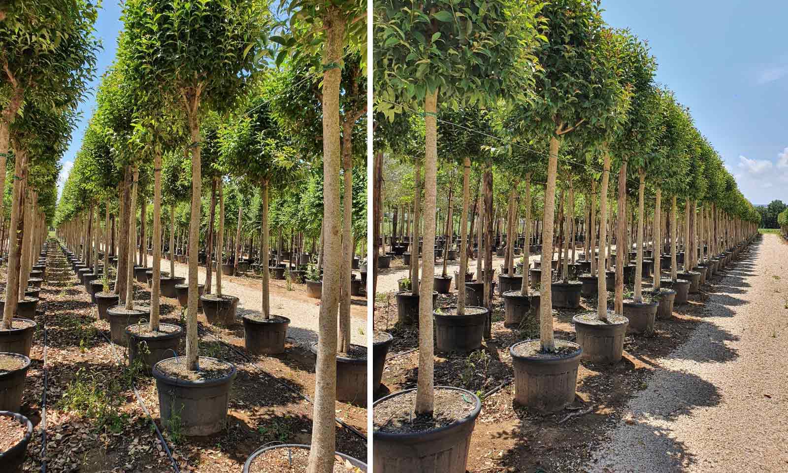 30-35 cm: 150-200 litre pot, trunk 200 – 240 cm (6.6-7.8 ft), crown 180-200 cm (5.9-6.6 ft)