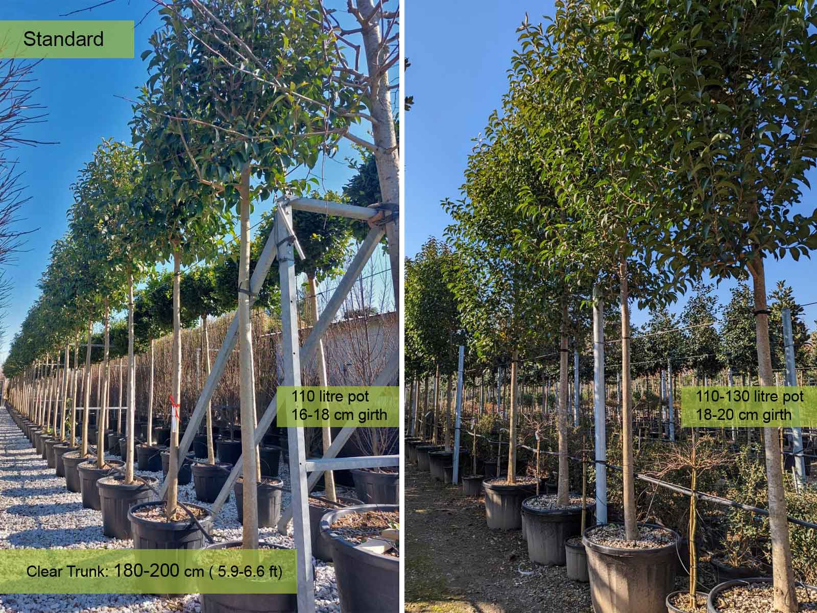 Girth 18-20 cm: 110-130 litre pot, trunk – 200 – 220 cm (6.6-7.2 ft), crown – 80-140 cm (2.6-4.5 ft);