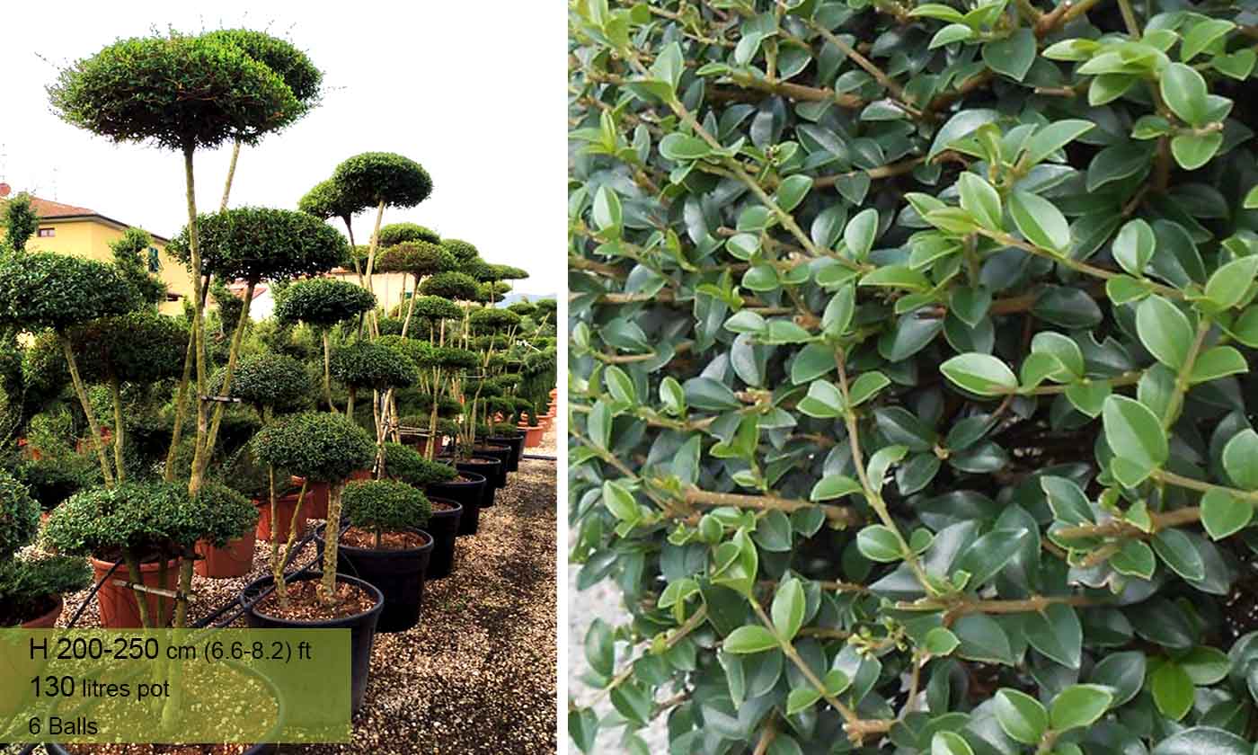 The Privet, also known as the Ligustrum, starts its tale from Asia, eventually extending into Australia and Europe. The actual plant is used as a street tree in Europe and has an interesting history in that it became very popular as a street ornament in Britain during WWII when the government started to requisition post-1850 iron gates and railings to be turned into ammunition for the war effort. The plant itself is semi-evergreen and is a very bushy shrub although this variant grows into a lovely lollipop shape hence its other name, ‘Lollipop Privet’.