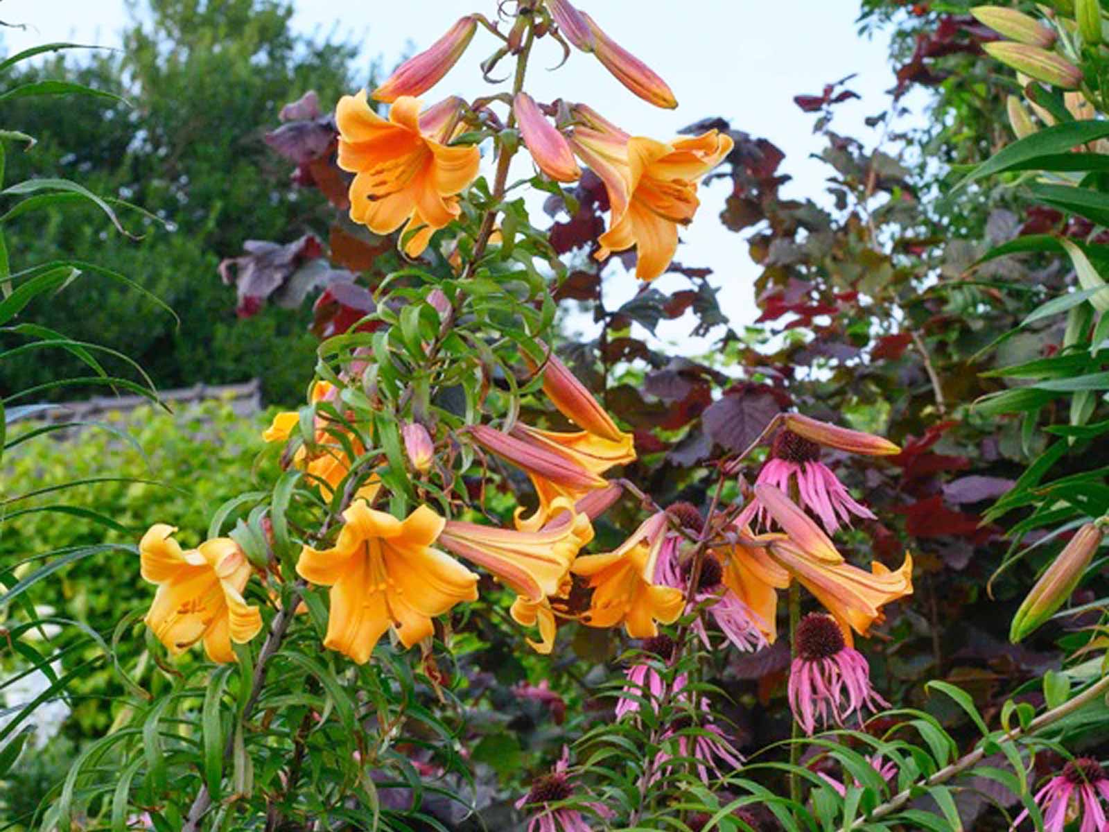 Reaching up to 120–150 cm (48–60″) in height, it thrives in full sun to partial shade and well-draining soil. Lilium ‘African Queen’ blooms from July to August, bringing rich color and sweet perfume to the summer garden.