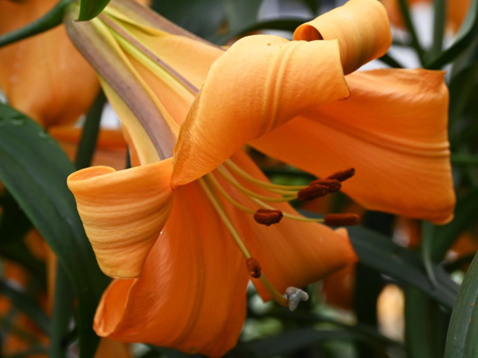 Lilium ‘African Queen’ is a classic trumpet lily variety, celebrated for its large, trumpet-shaped blooms in warm, coppery-orange to apricot tones. The flowers are strongly fragrant and face outward to slightly downward, creating a dramatic, elegant presence in the garden. Perfect for borders and tall background plantings, it also makes an excellent cut flower.