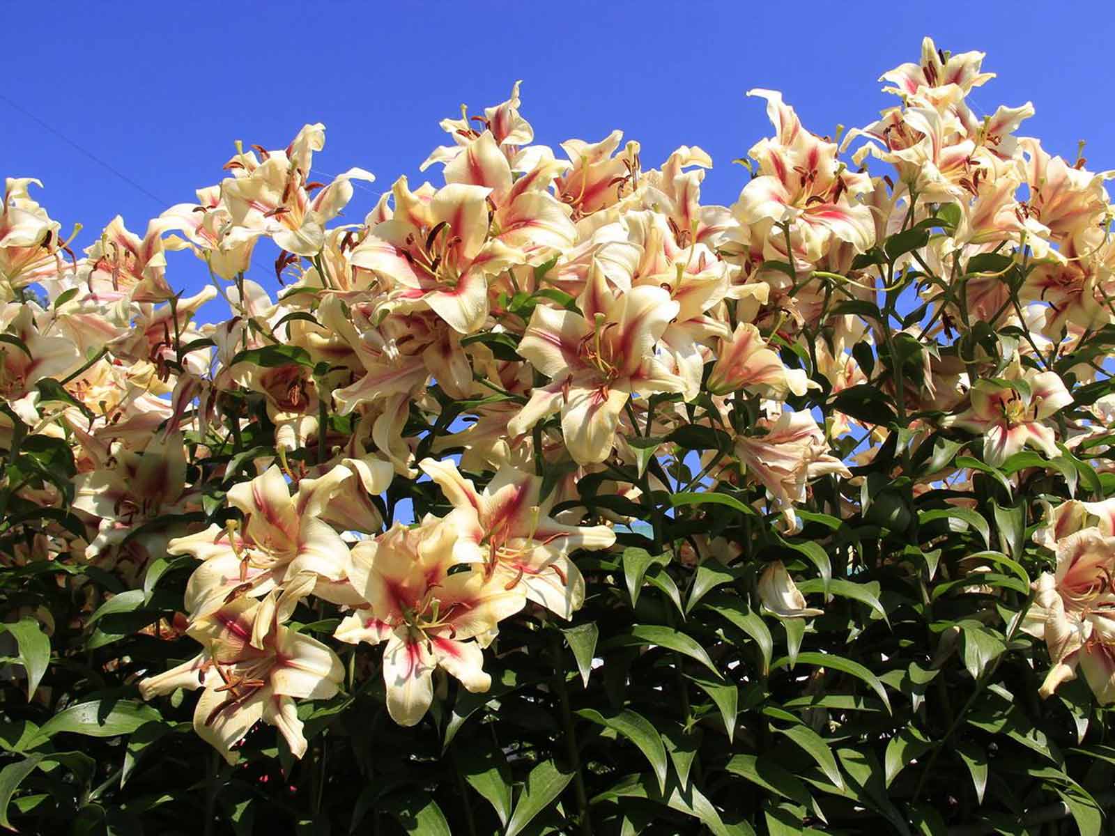 Reaching up to 120–150 cm (48–60″) in height, it thrives in full sun to partial shade and well-draining soil. Lilium ‘Lavon’ blooms from July to August, delivering a rich, colorful, and sweetly scented show during the peak of summer.