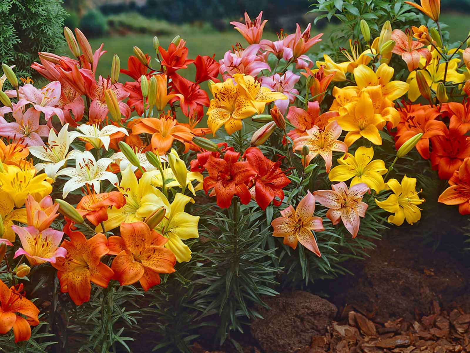Lilium Mix is a vibrant and diverse blend of lily varieties, offering large, trumpet-shaped blooms in a wide range of colors including white, pink, orange, yellow, and red. These striking, fragrant flowers bring height, elegance, and bold color to borders, beds, and cut flower arrangements. The mix may include Asiatic, Oriental, or other hybrid types, each contributing its own unique form and bloom time.