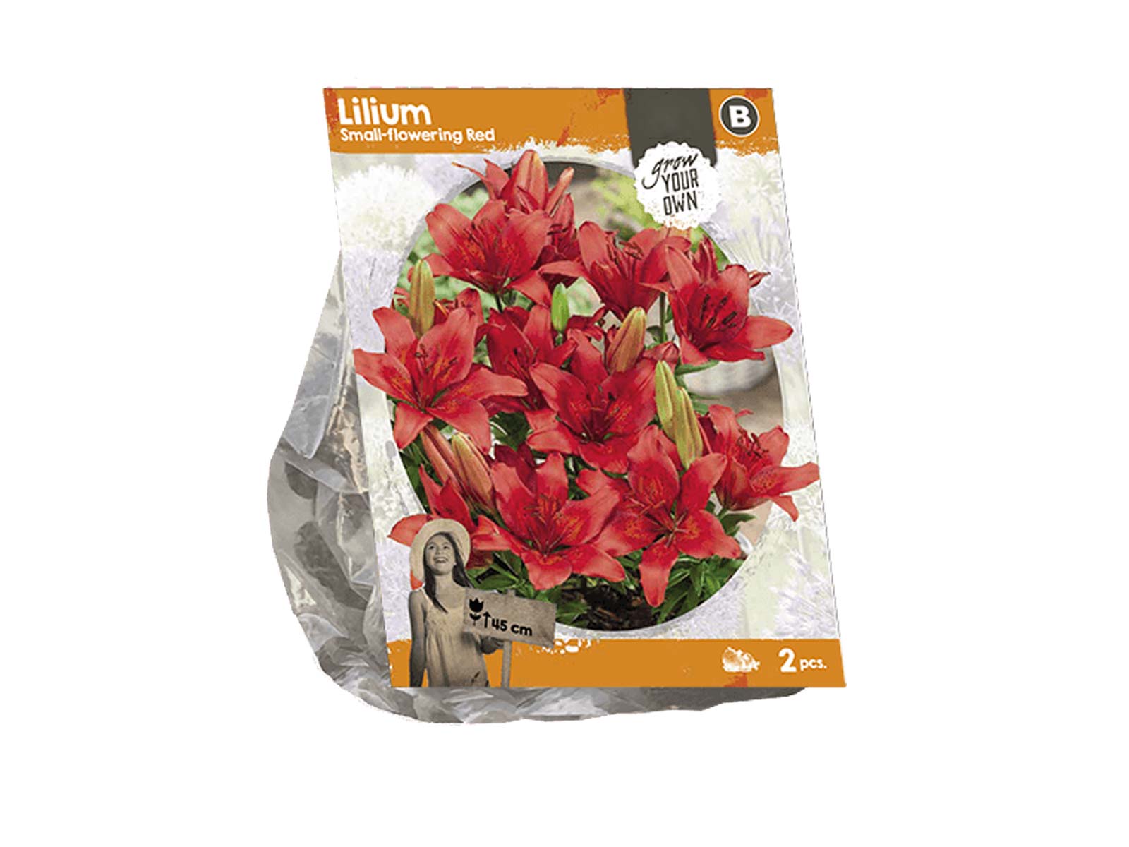 Lilium Small-flowering Red is a vibrant variety boasting bold, fiery red blooms that instantly draw attention in any garden setting. Its compact stature and striking flowers make it a perfect choice for borders, beds, and containers, adding a splash of vivid color and elegant form to your outdoor space.