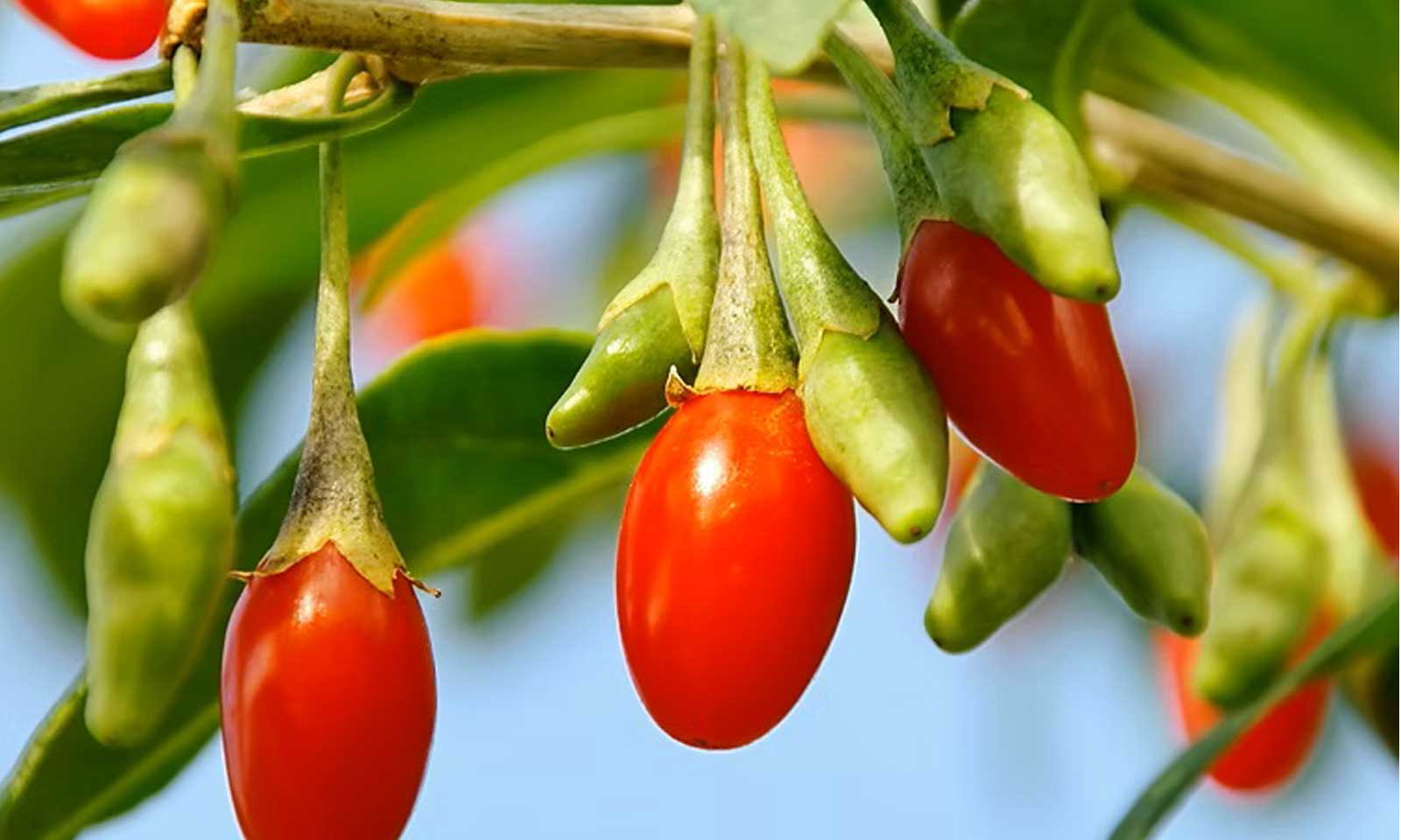 A nutrient-rich, drought-tolerant shrub known for its bright red berries, which are packed with antioxidants. It thrives in various climates and is easy to grow with minimal maintenance.