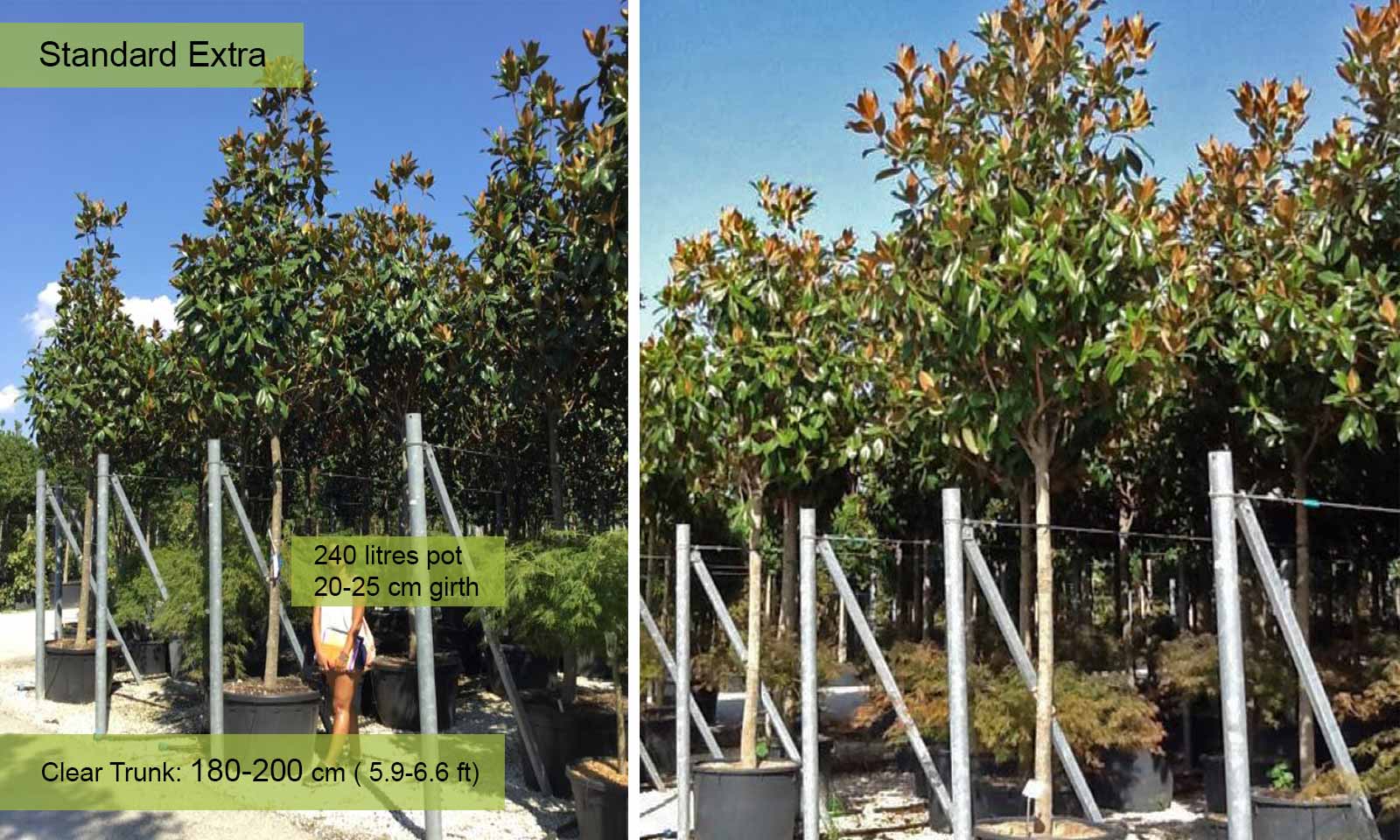 Girth 20-25 cm: 240 litre pot, clear trunk – 180-200 cm (5.9-6.6 ft), crown – 160-180 cm (5.2-5.9 ft);