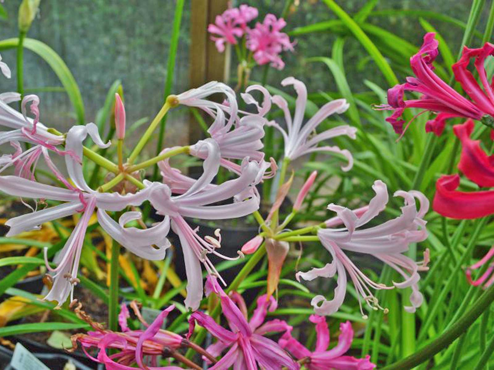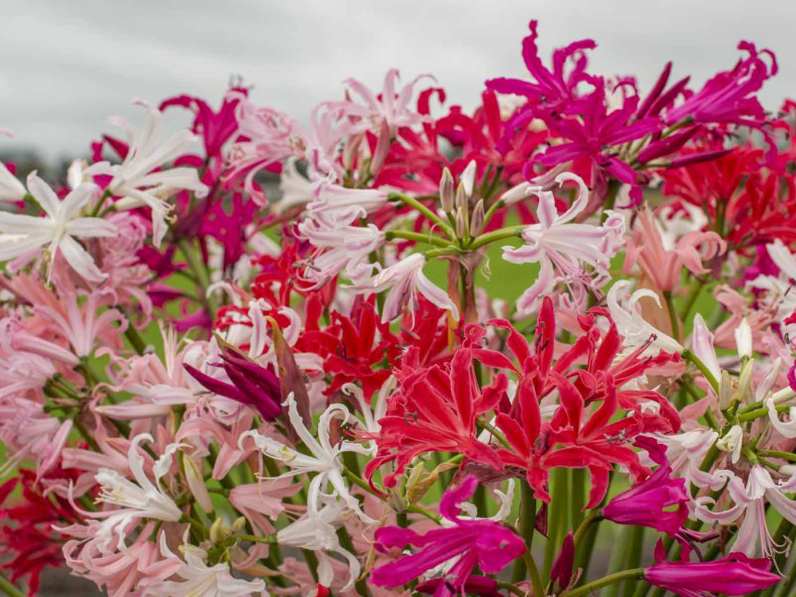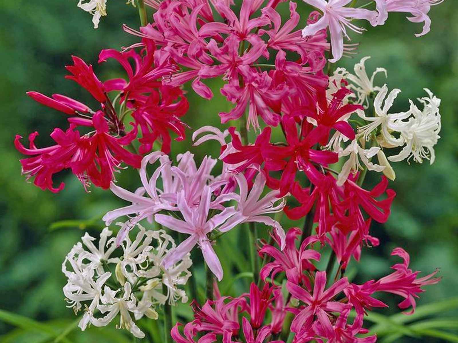 Nerine bowdenii Mix is a beautiful blend of late-flowering bulbs that showcase delicate, star-shaped blooms in a range of soft pinks, bright pinks, and crisp whites. With their slender, wavy petals and upright, leafless stems, these flowers add elegance, texture, and fresh color to borders, rock gardens, and containers just as the garden begins to wind down for the season.