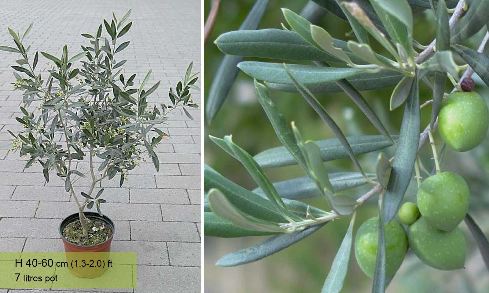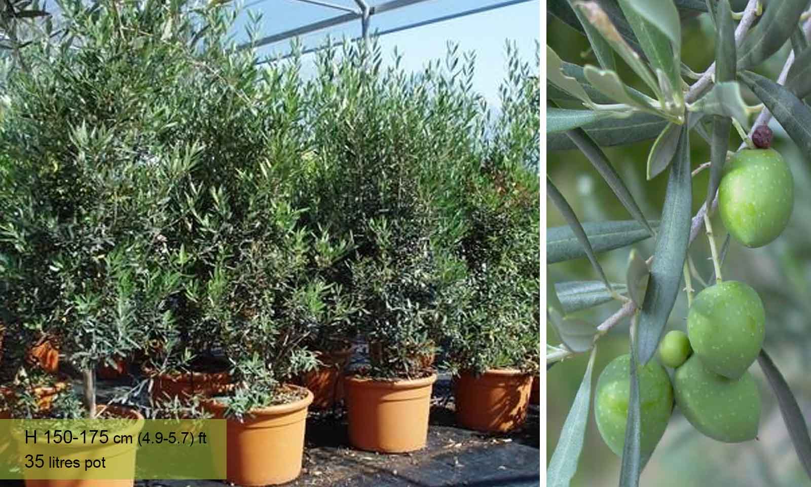Olea Europaea olive fruit tree is increasingly being grown in containers as a Specimen Plant in UK gardens. The attractive evergreen foliage accounts for its popularity as the olive tree retains its pointed leathery grey-green leaves all year round.Tiny scented white flowers appear in late spring often followed later in the year by small, ornamental fruit. For the olive tree fruit to ripen fully, it needs a long, hot summer followed by a cooler winter, though the exact temperatures depend on the specific cultivar. Despite this, some gardeners in milder parts of the UK have managed to grow edible olives from their own olive tree. This plant needs plenty of natural sunlight and it has a hardiness rating of H4, making it very durable in the UK’s climate. Just make sure to shelter the plants during extreme cold snaps.Try to give this plant a once year trim and follow the guidelines of pruning group 1 for further ideas. The plant is generally disease free but has a potential problem with pests.