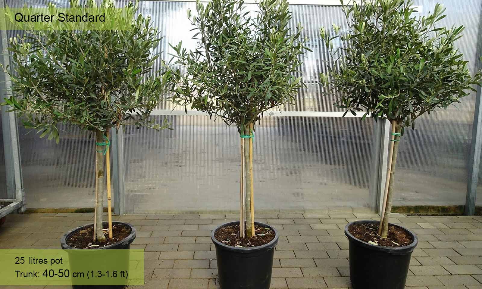 25 litre pot: trunk – 40-50 cm (1.3-1.6 ft), canopy – 40-60 cm (1.3-2 ft)
