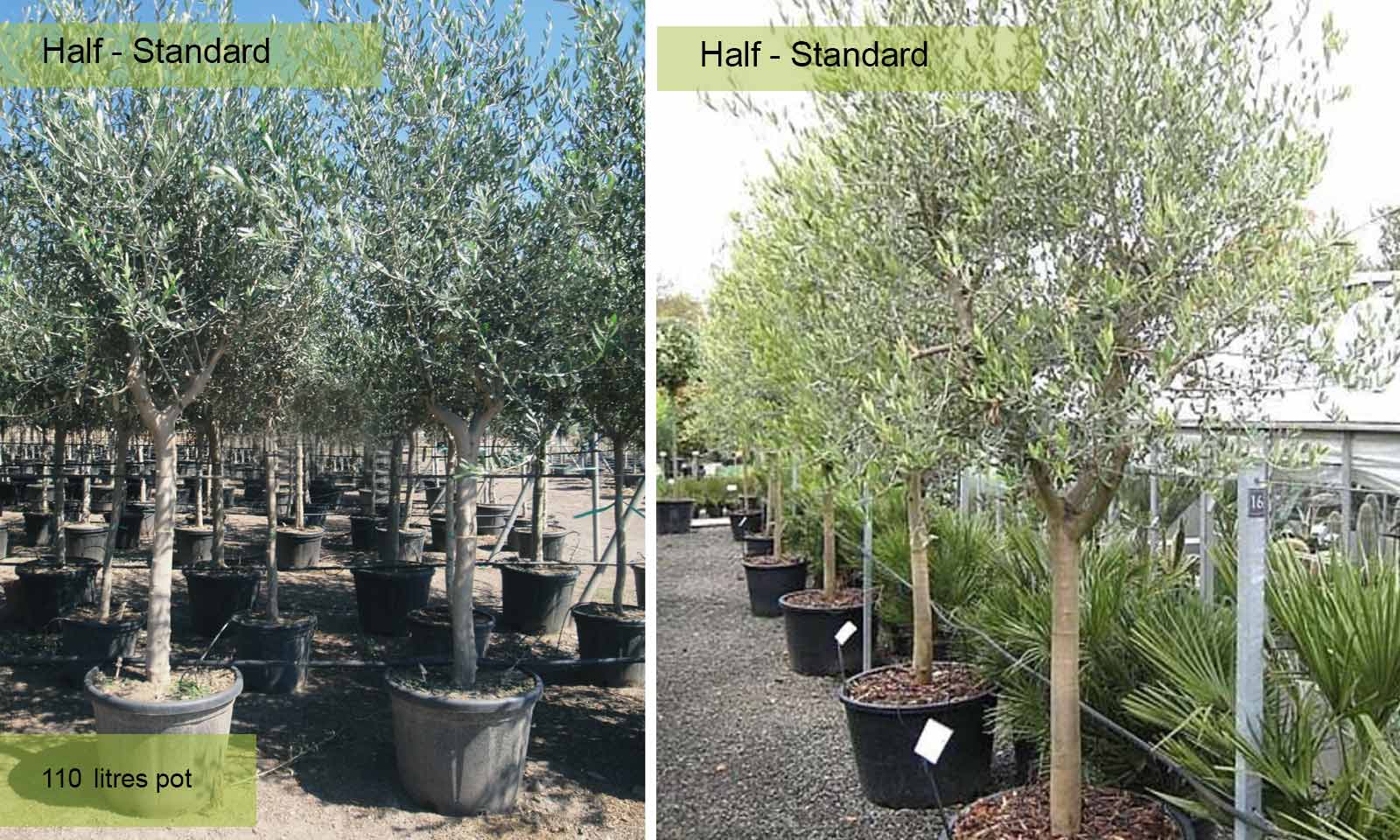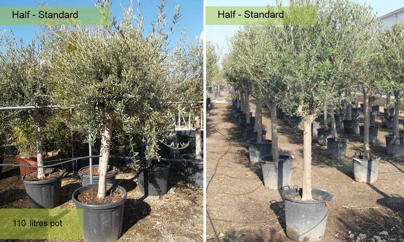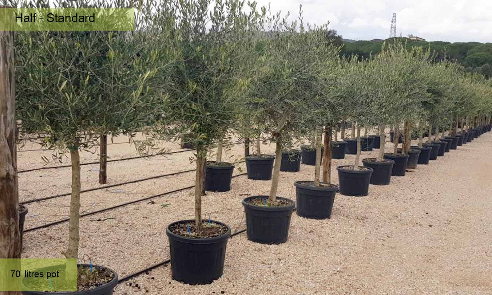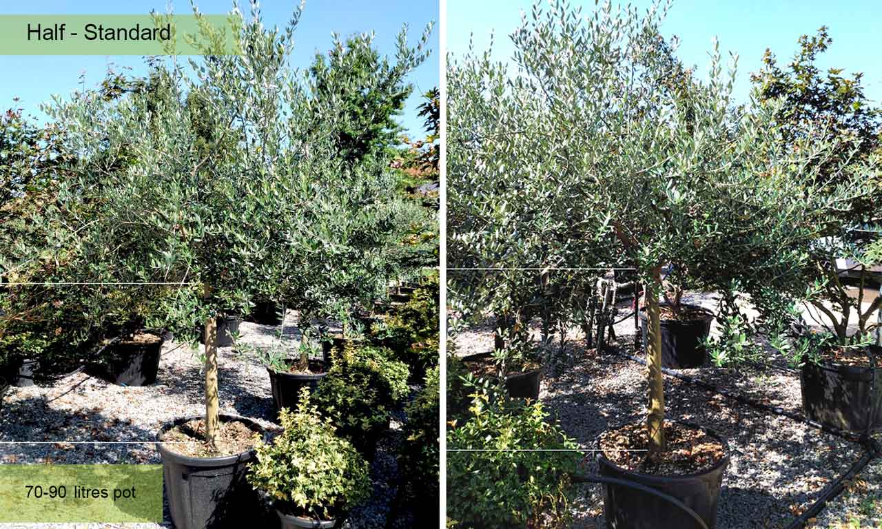 150-170 litre pot: trunk 80 – 120 cm (2.6-3.9 ft), canopy app. 100 – 140 cm (3.3-4.6 ft)