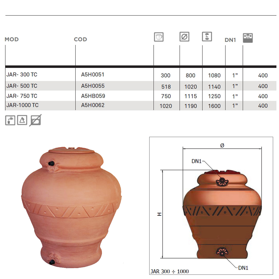 Orcio Jar Water butt (300L, 500L, 750L, 1000L)