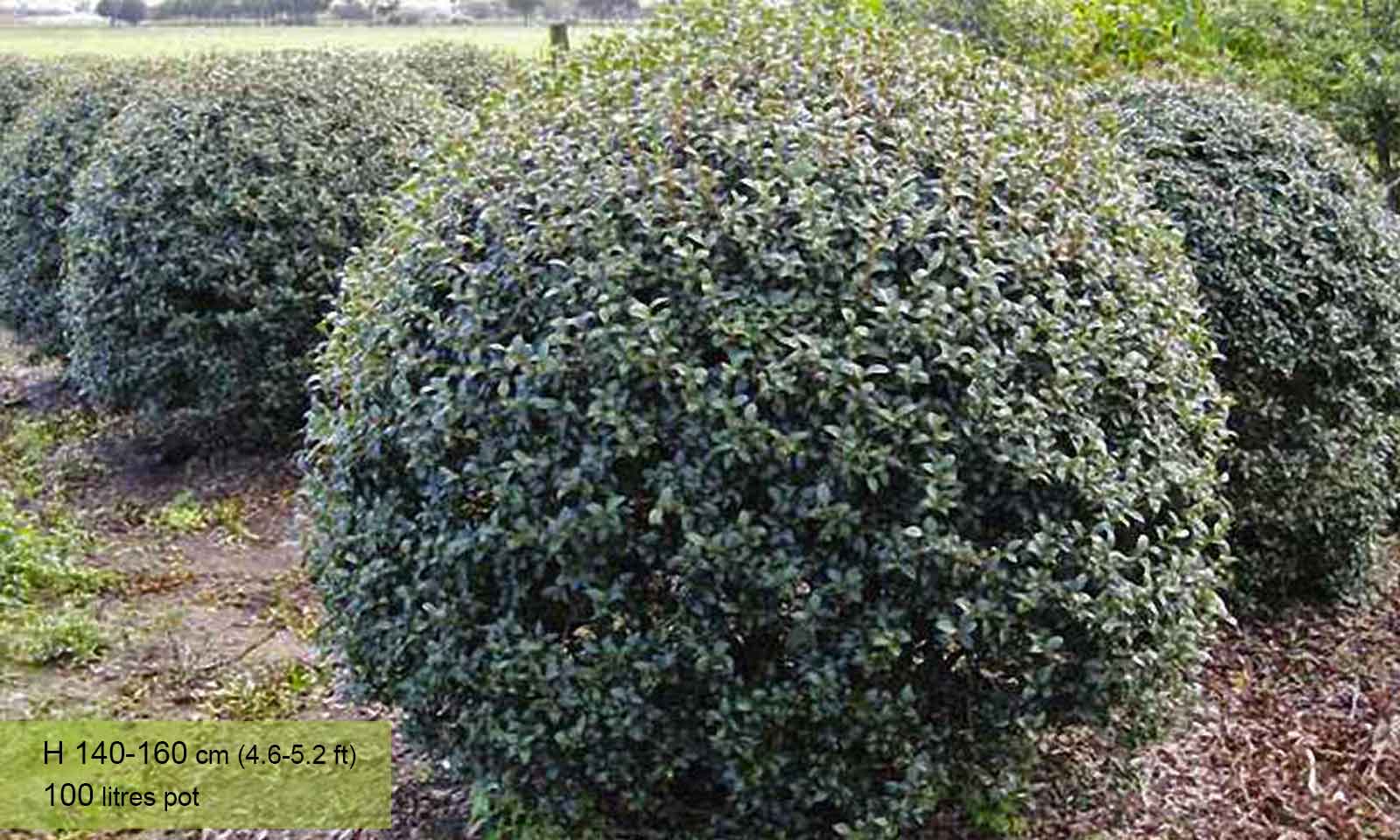 A magnificent 150 cm diameter topiary ball clipped from Osmanthus aquifolium (Sweet Olive) that would look equally stunning as a centrepiece in a border or displayed as a container plant in a courtyard.Osmanthus aquifolium (Sweet Olive) is a handsome Japanese evergreen shrub with deep green, glossy foliage. Its leathery leaves have sharply serrated margins and osmanthus aquifolium is easily mistaken for a green-leaved Holly. At the end of autumn sweet olives bear tiny fragrant greenish-white flowers .