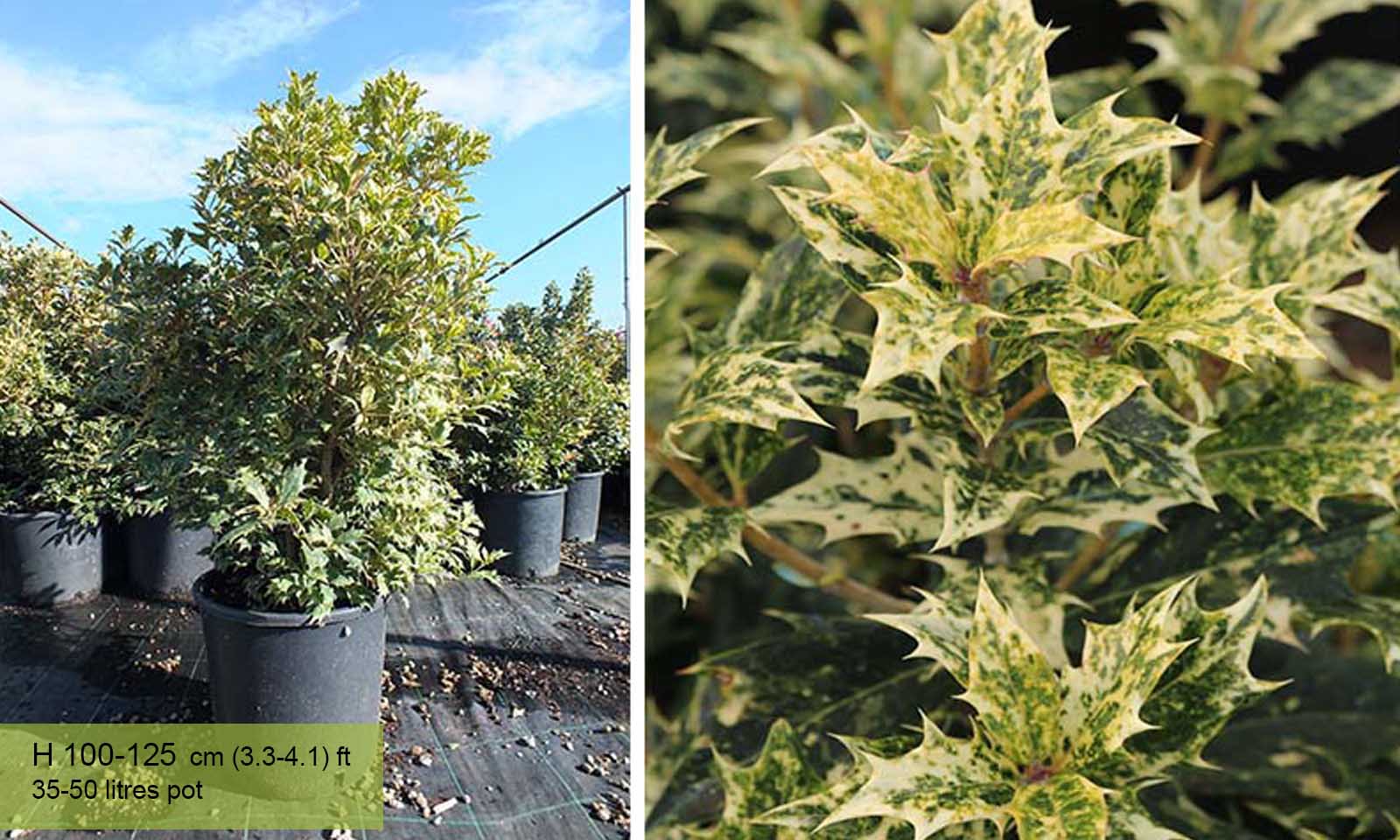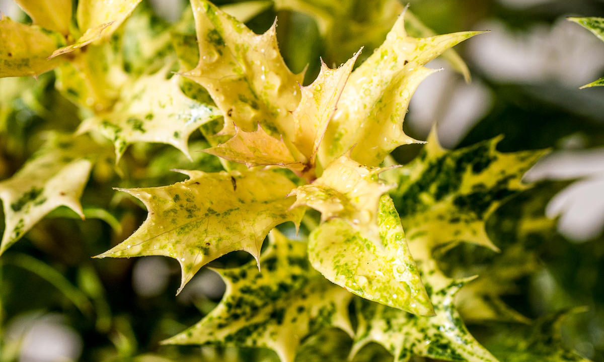 A slow-growing shrub with colourfully patterned leaves that are a similar shape to holly.