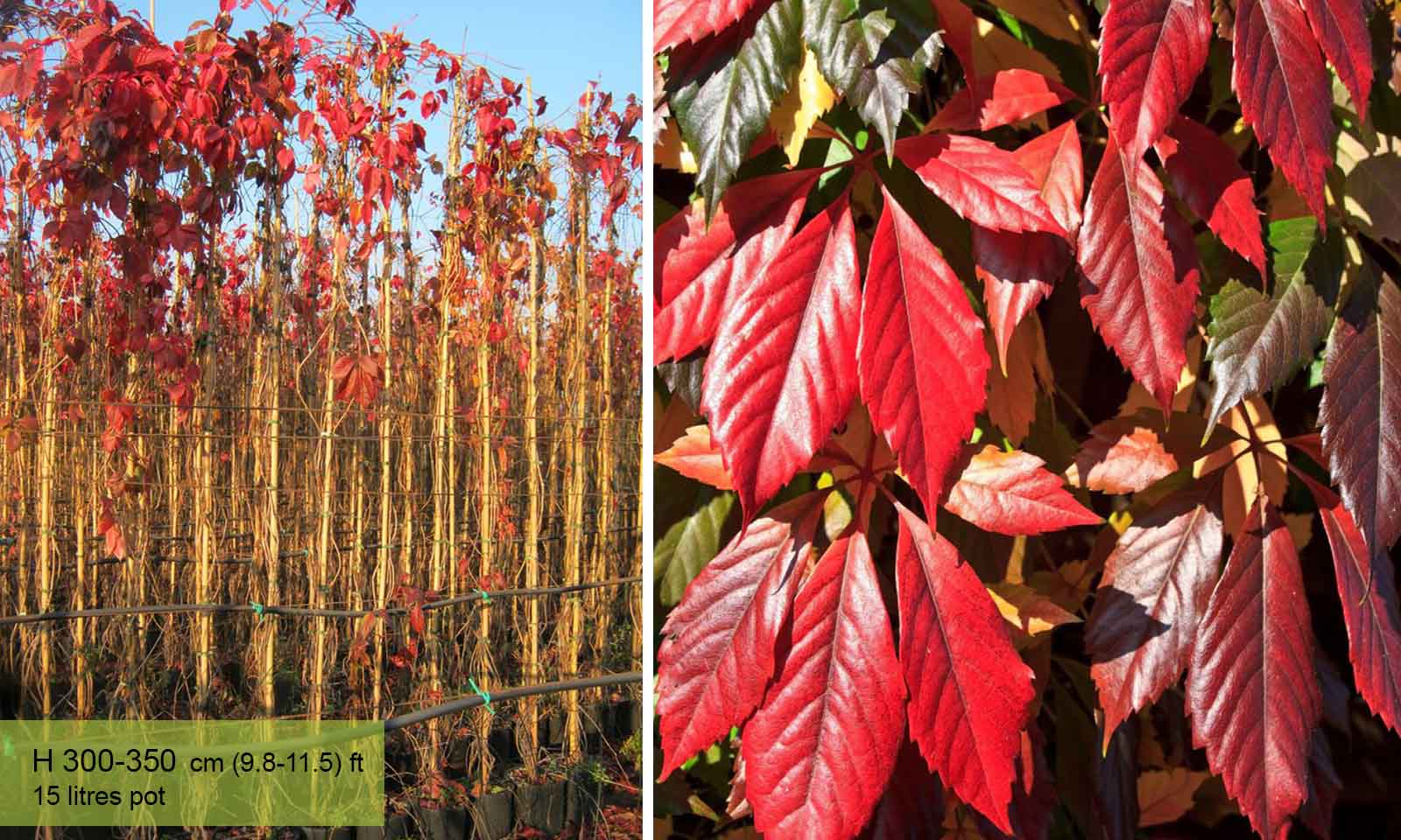 Parthenocissus are vigorous deciduous climbers with either tendrils or disk-like suckers, and lobed or palmate leaves which often colour brilliantly in autumn. Inconspicuous green flowers are sometimes followed by attractive blue or black berries. They originate from North America. The plant itself is very hardy at H6, making it perfect for the UK climate. Only shelter in extreme cold weather. The plant itself can also grow in full shade so bear this in mind. The plant is generally disease free but could have potential pests. Follow the guidelines of pruning group 11 for the winter time. It is possible to prune also in the summer.
