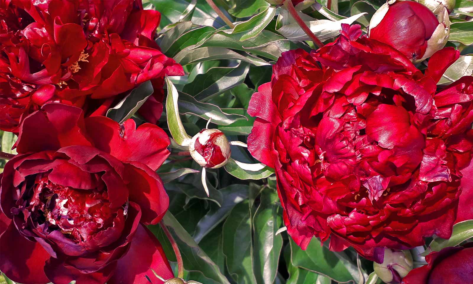 “Highlight” is a very dark red peony with large, full double flowers. This peony has few side buds and it is a peony variety which is very suitable for cutting. Strong plant and good grower. A very dark flower that still seems to be a ray of sunshine in the garden.