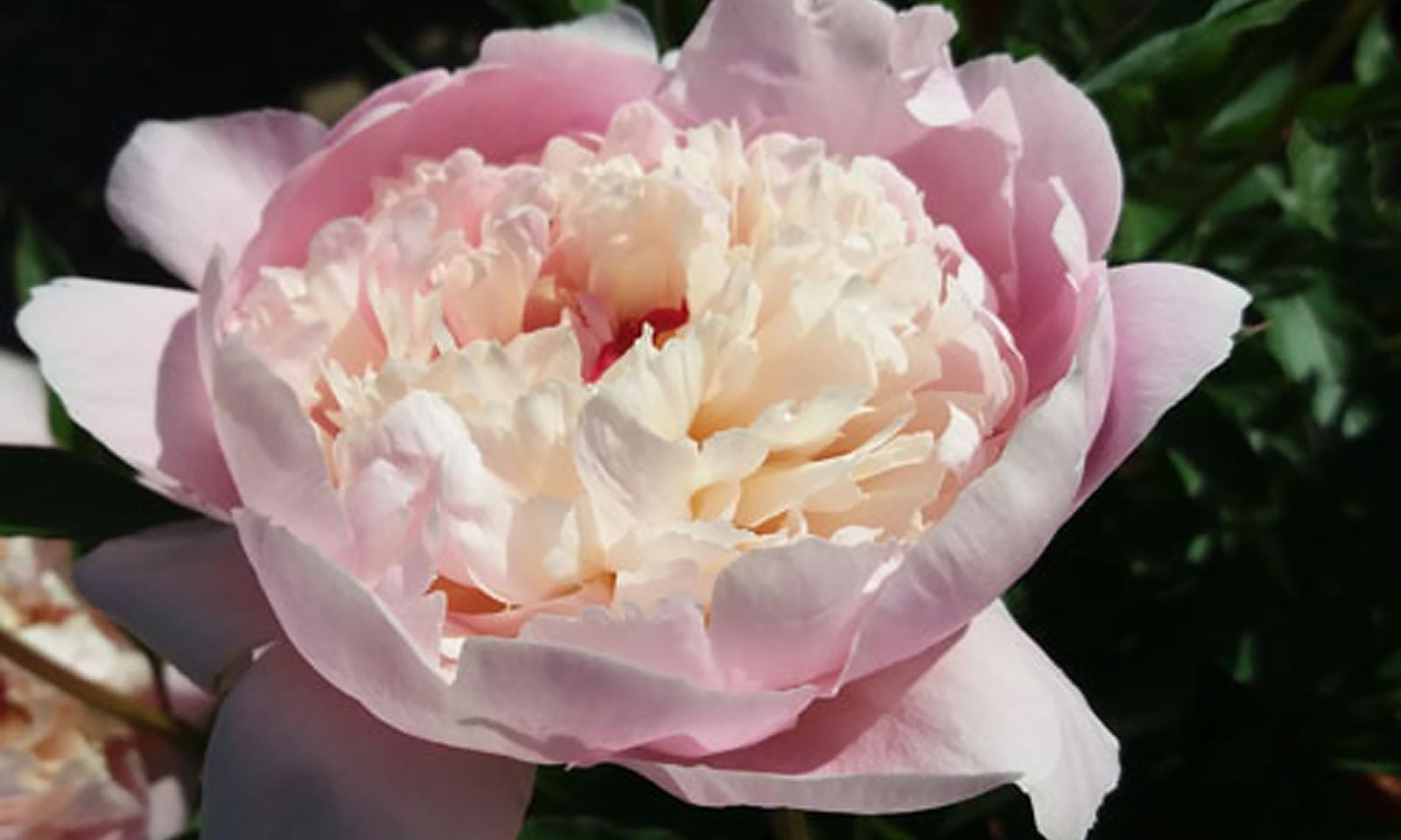 An upright and bushy herbaceous perennial with attractive, dissected dark green foliage tinged red in spring. Erect stems holding showy, spicily scented, saucer-shaped pale pink and cream flowers appear in summer. Easy to grow, prefers areas of sun-partial shade and fertile, drained soil.