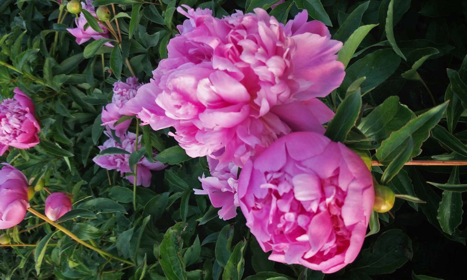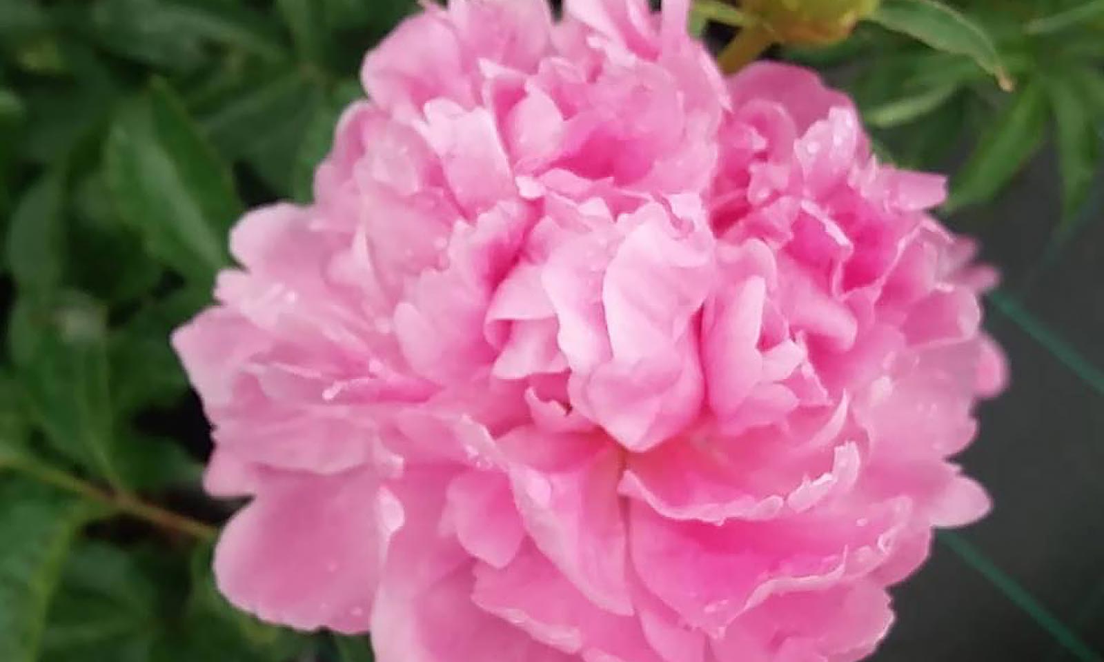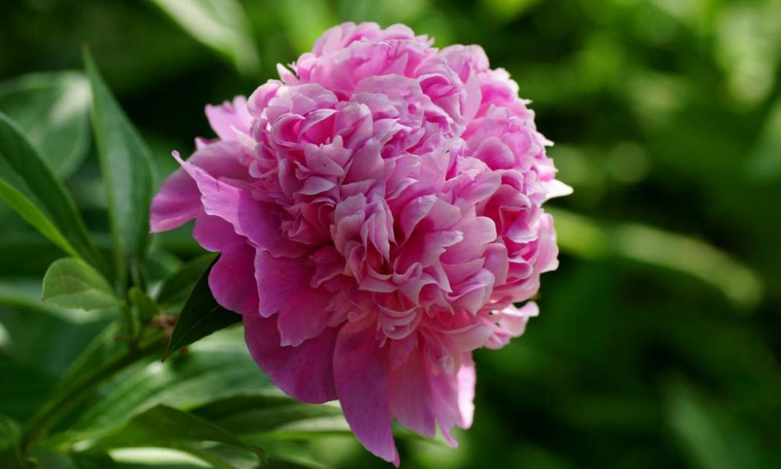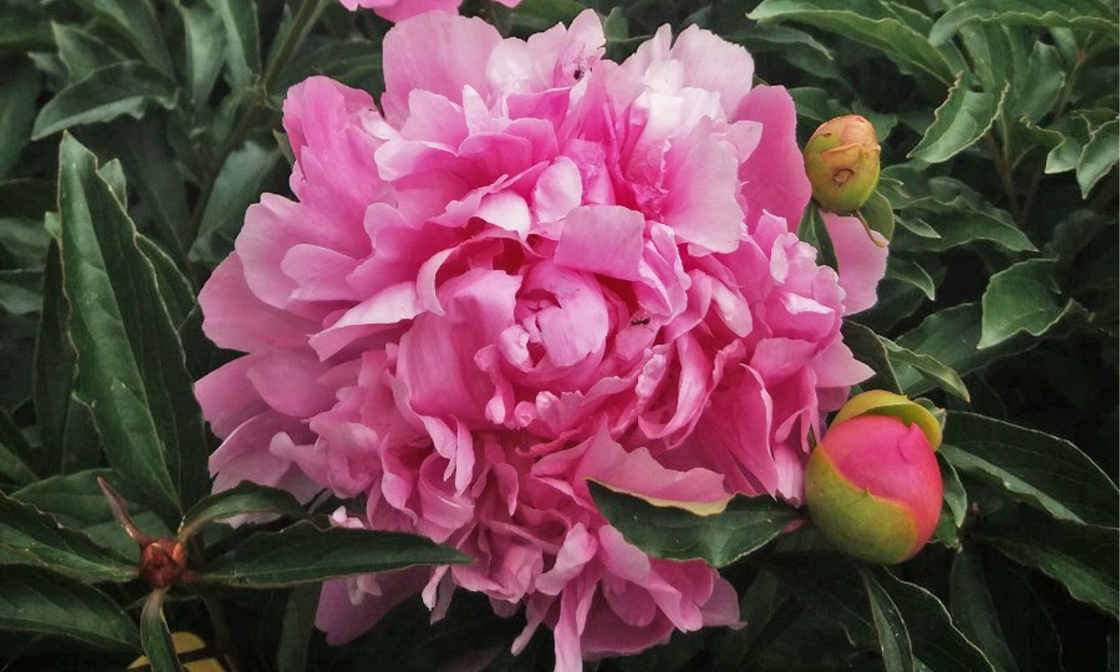 ‘Monsieur Jules Elie’ is an herbaceous perennial to 1m tall, with dark green foliage and fragrant, double, deep rose-pink flowers 20cm across in early summer, the petals with a silvery sheen.