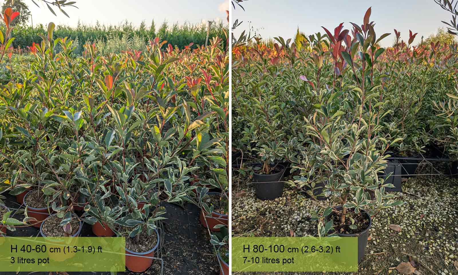 7-10 litre pot: height 80 – 100 cm (2.6 – 3.2 ft)