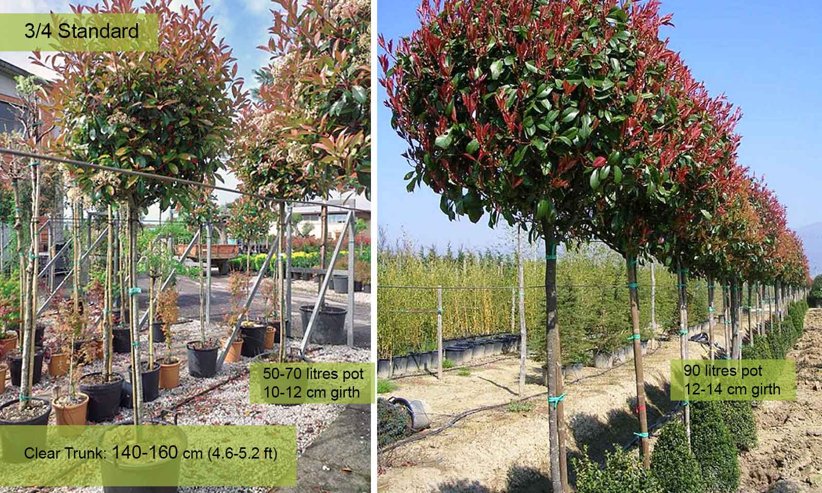 12-14 cm: 25-35 litre pot, Trunk – 140-160 cm (4.6-5.2 ft)
