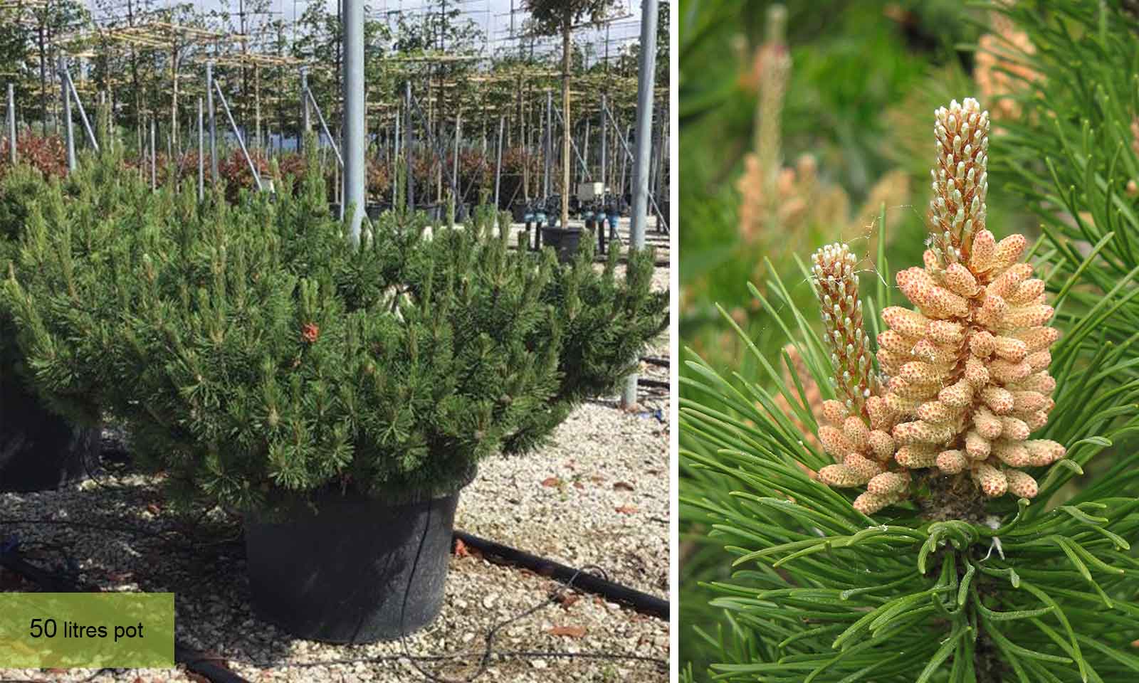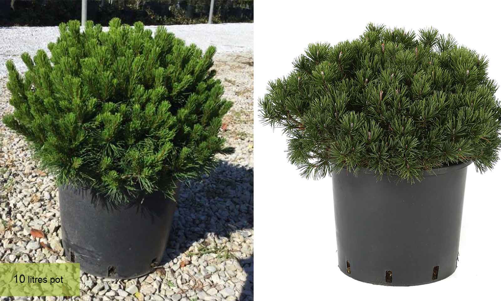 The Dwarf Mountain Pine originated in central Europe and is commonly found within the Balkan Peninsula – rocky slopes with thin soil that are constantly exposed to the elements. This resistance to cold and drought makes the Dwarf Mountain Pine ideally suited to survive the weather cycle here in the UK. Their slow growth makes them low maintenance and easy to manage – a great choice for large patio pots and pathway borders.