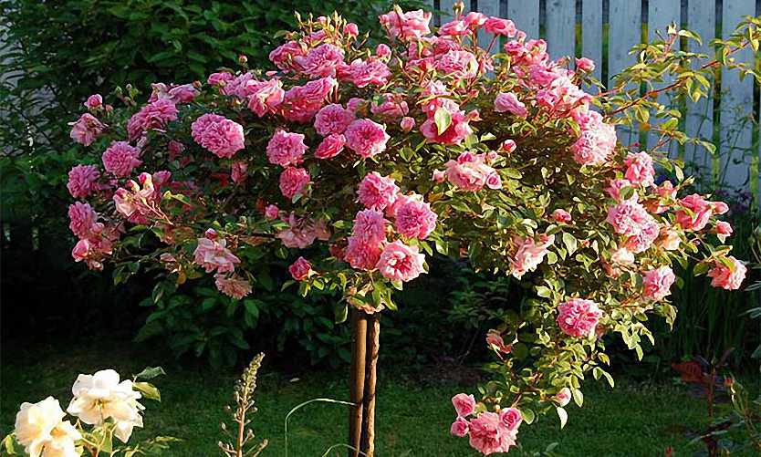 A range of coloured roses with long arching branches that weep and trail like water fountains.