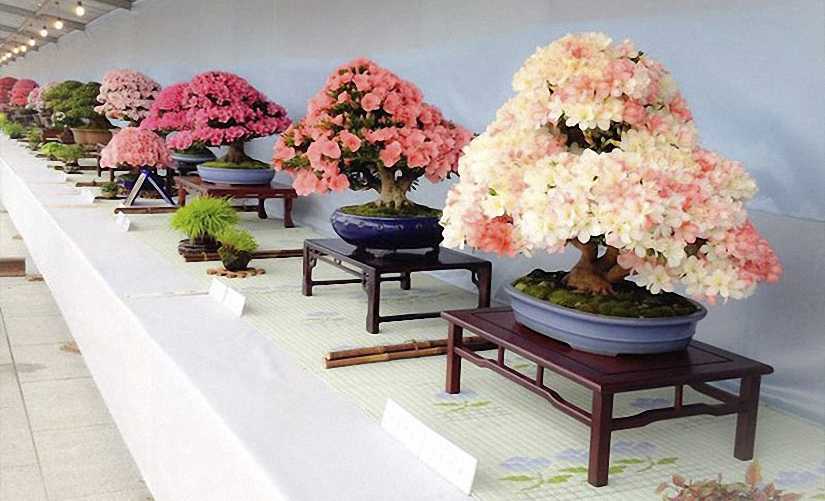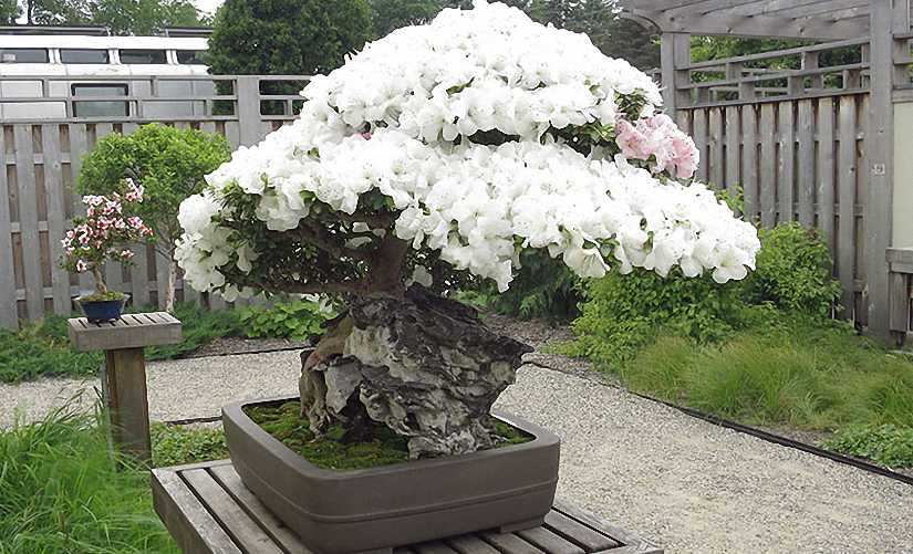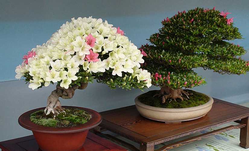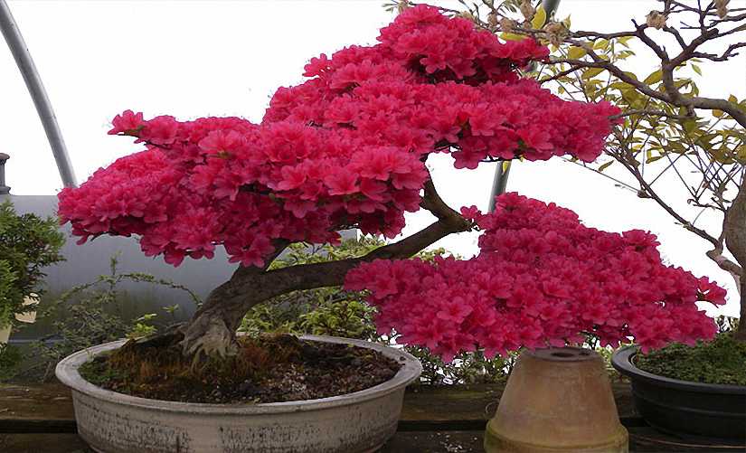 Prized for their beautiful flowers, the Azaleas are among the most popular bonsai in Japan. They are temperate trees and grow best in a mild climate. They are not as winter-hardy as pines, conifers, etc., but are not as tender as tropicals. This means they should be grown outside for the summer and can be inside for the winter.