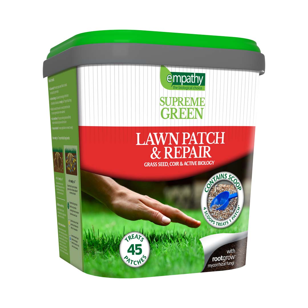 Supreme Green Patch & Repair with Root Grow mycorrhizal fungi is suitable for repairing worn patches on established lawns.