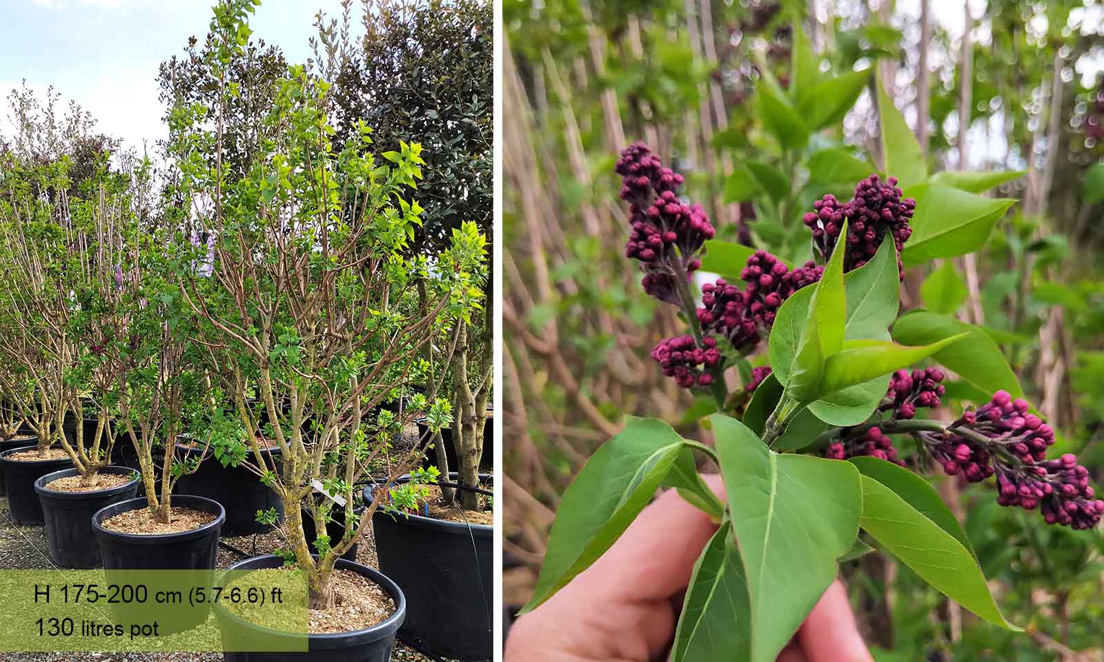 Origin: Western Europe. Suckering shrub or small deciduous tree, densely branched. Heart-shaped, pale green leaves, 5-10 cm long, 4-12 cm wide. Flowers: from April to May, terminal inflorescences in the shape of panicles on old branches, lilac, simple, fragrant. Grows well in all types of soil, withstands high temperatures and pollution. Can be planted singly, in groups, as a hedge especially on high ground, up to 1000 meters.