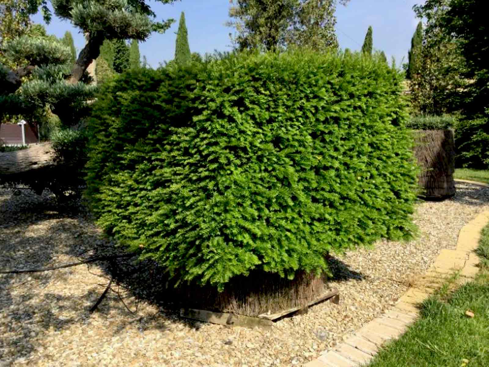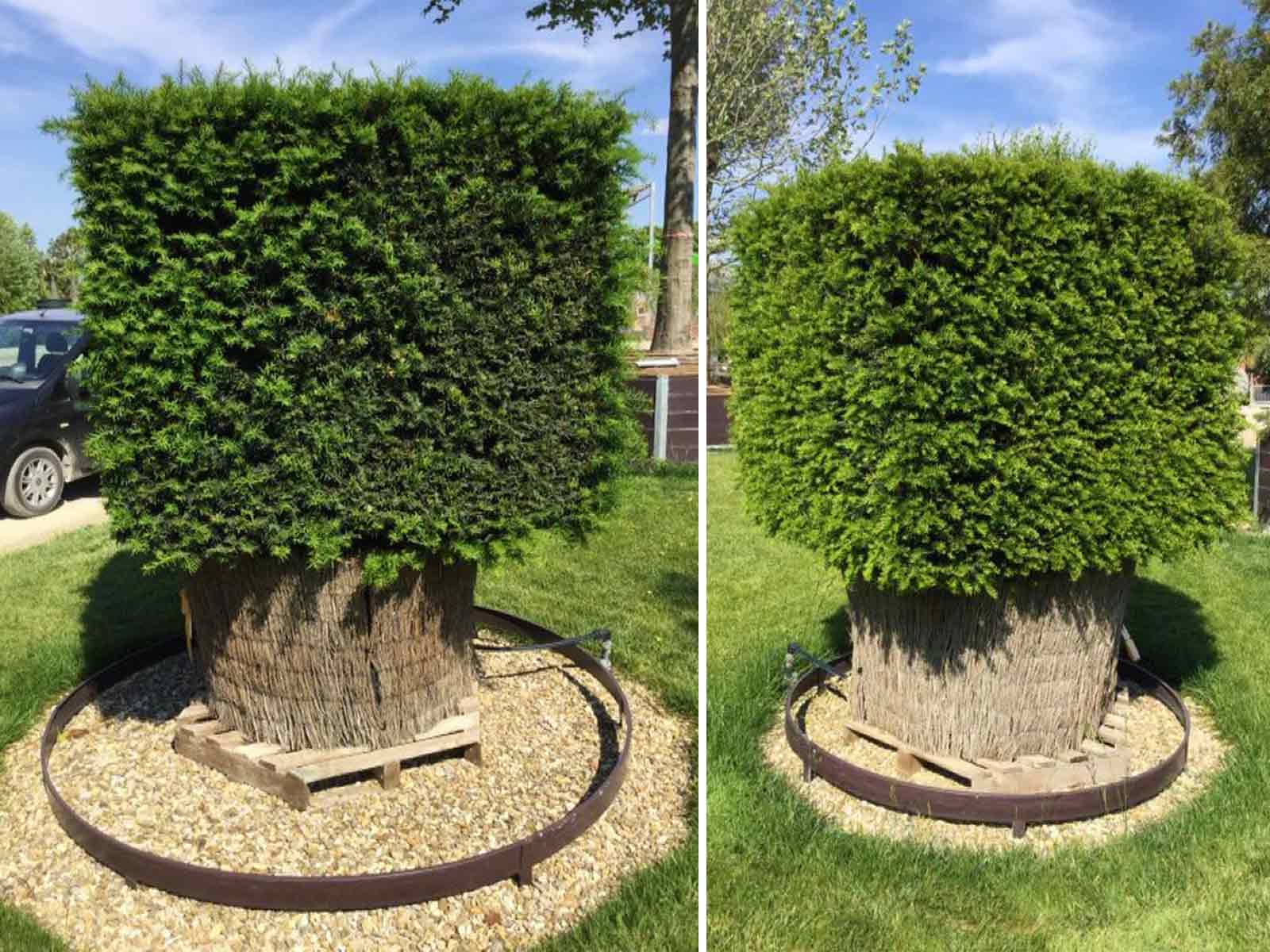 Withstands being covered by old trees. Used a lot for hedges because it tolerates severe, repeated pruning and it is also for this reason that this plant is used for creating geometric shapes and Giant Garden Bonsai. No regular pruning is required but trimming and shaping throughout the spring and summer months is advisable. The hardy rating is (H7) making this plant perfect all year throughout the UK. Fruit can grow in the Autumn time but it is advisable not to eat anything due to high levels of toxicity associated with this plant.