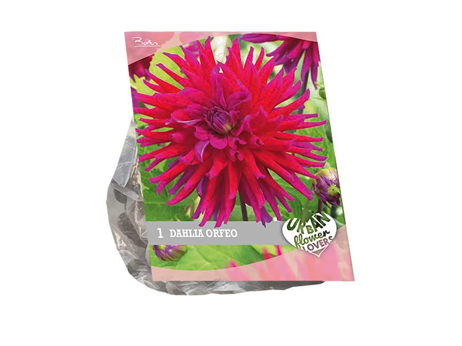 Dahlia ‘Orfeo’ is a captivating variety featuring vibrant carmine-pink blooms that glow with intensity against deep green foliage. Its large, fully double flowers boast a classic, romantic shape, making it a standout addition to any garden. With its rich color and lush form, ‘Orfeo’ adds a bold yet elegant presence to borders, beds, and containers.