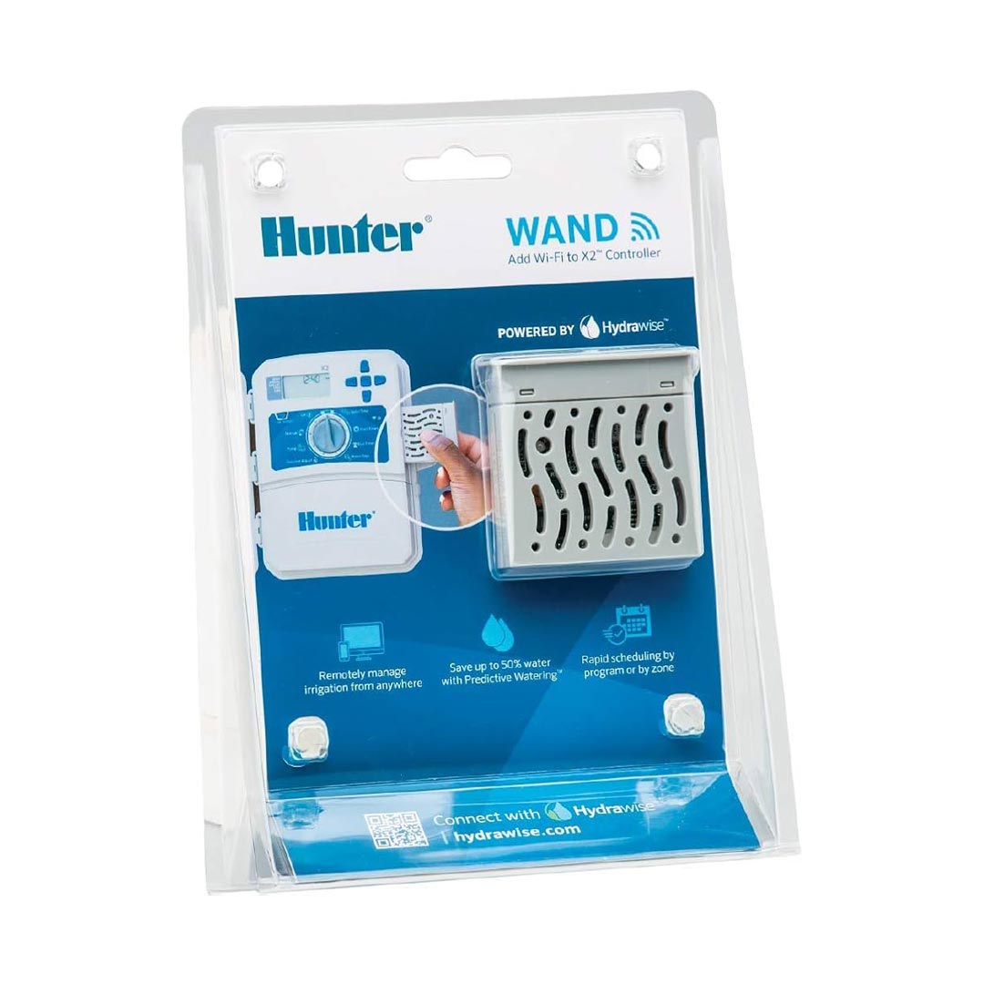 By adding the WAND Wi-Fi module to the X2 controller, it connects to Hydrawise allowing the system to adjust schedules based on the expected temperature, probability of rain, wind and humidity to provide maximum water savings.