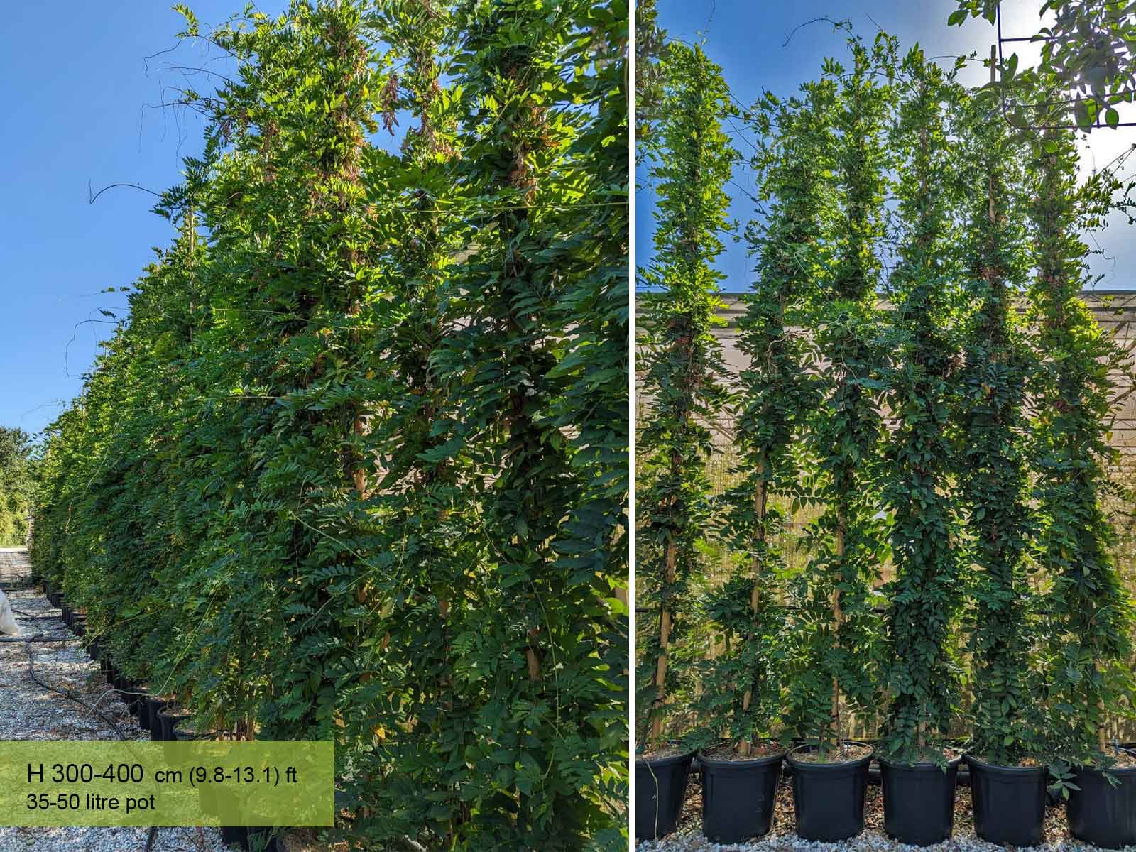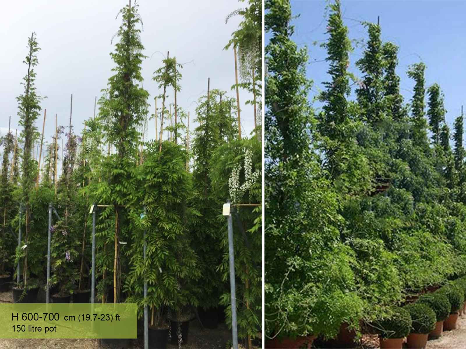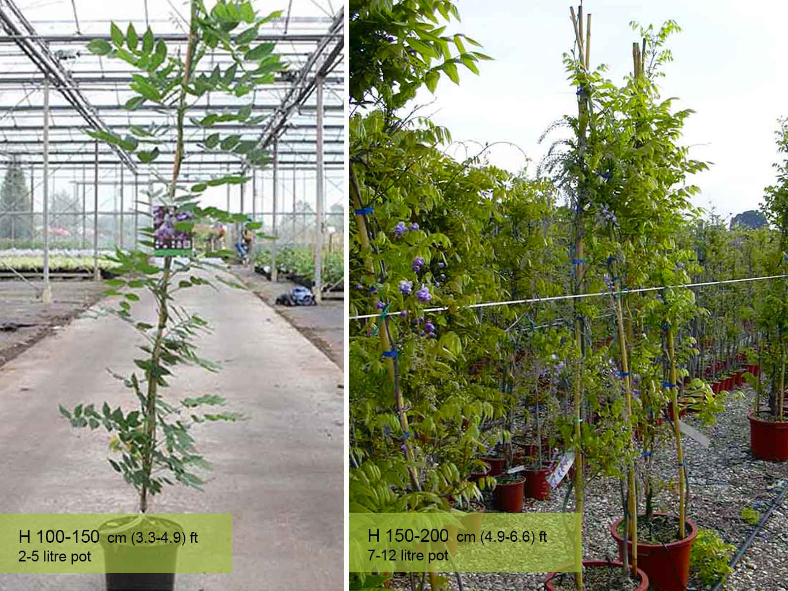 The most common varieties we deliver Wisteria Sinensis Alba, Wisteria Sinensis or Wisteria Floribunda Black Dragon. However, due to the extensive range of Wisteria varieties, we reserve the right to deliver very similar looking variety to fulfil your order as long as we match selected Wisteria colour and selected size. If you would like specific variety of Wisteria to match an existing variety in your garden or if you selecting specific variety, please contact us prior to order to check availability of that specific variety of Wisteria plant in required size.