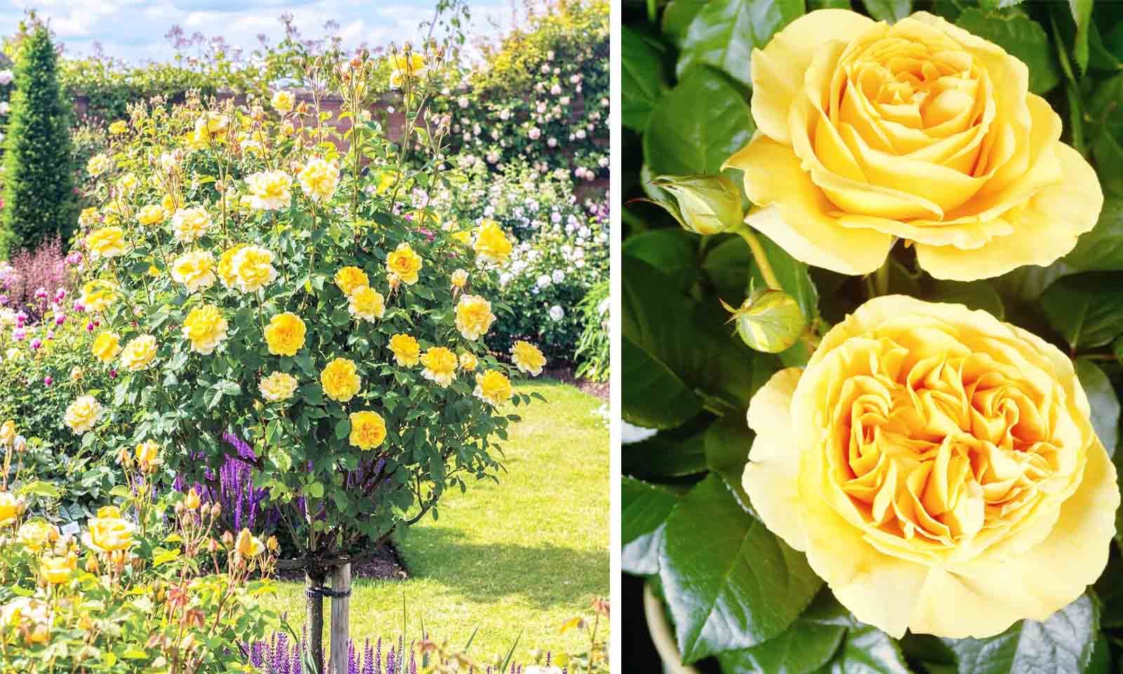 Bring a little sunshine into your garden with this bright and happy yellow rose tree.
